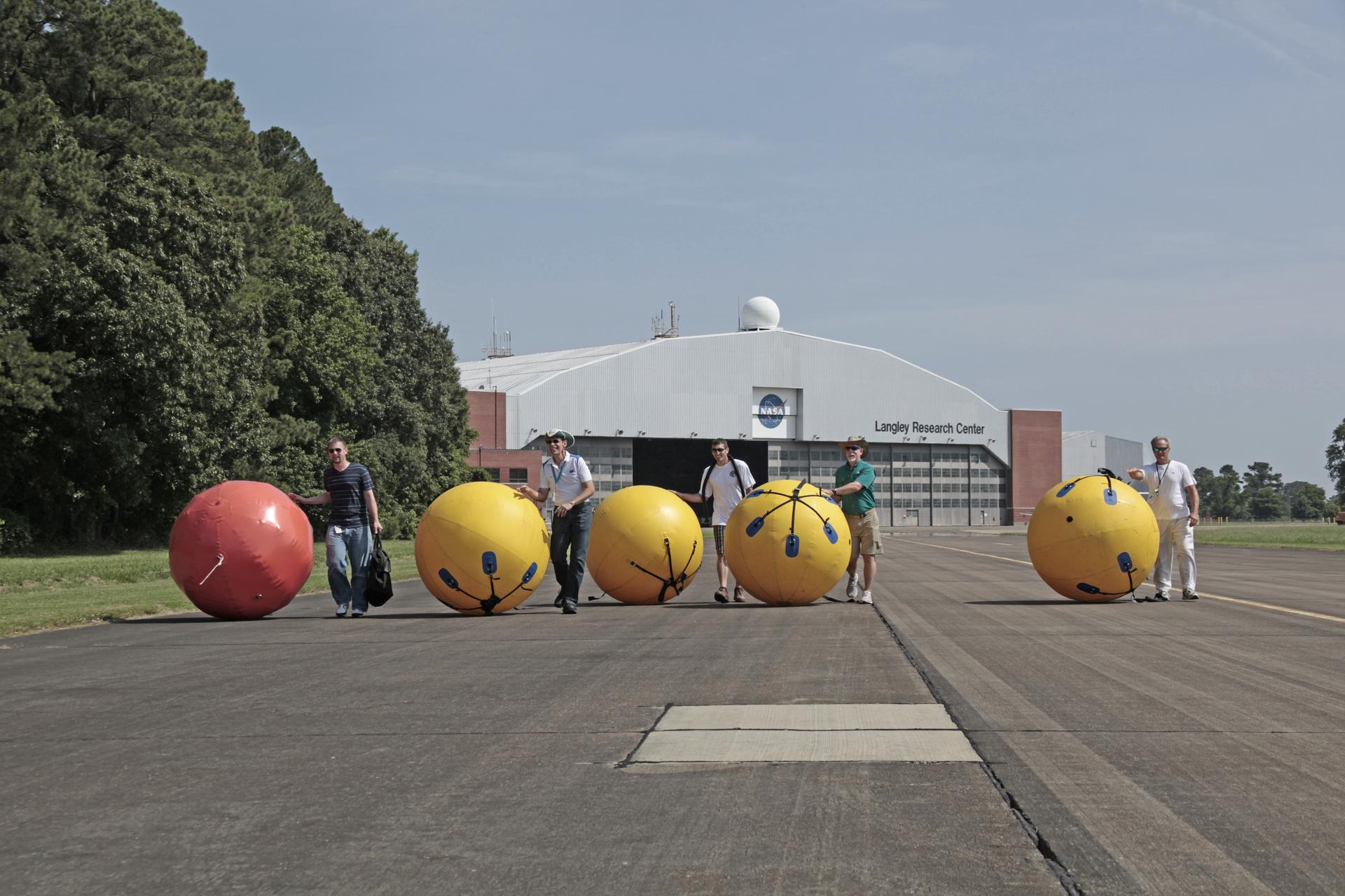 Engineers and technicians from NASA Langley Research Center in Virginia, Kennedy Space Center in Florida and Lockheed Martin in Colorado conduct a fit check on the Orion Crew Module at NASA Langley