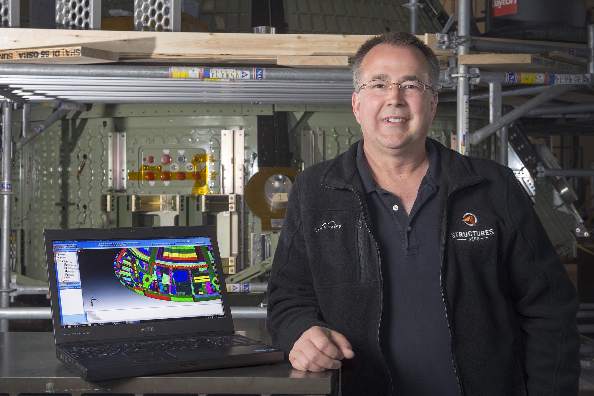 (NESC) NASA Engineering and Safety Center Orion Heat Shield Carrier Structure: Titanium Orthogrid heat shield sub-component dynamic test article : person in the photo Jim Jeans