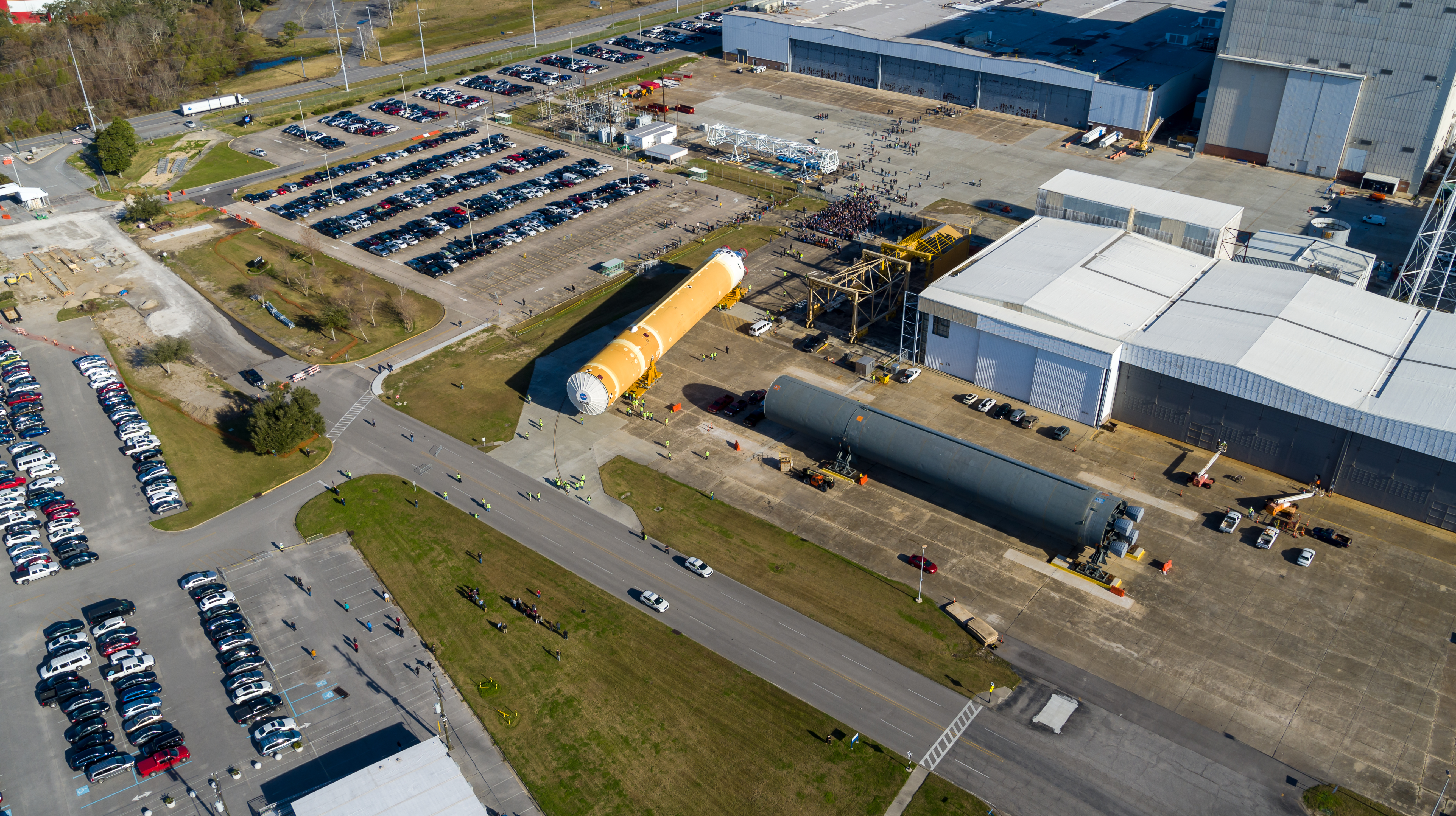 These images/video show how teams rolled out, or moved, the completed core stage for NASA’s Space Launch System rocket from NASA’s Michoud Assembly Facility in New Orleans. Crews moved the flight hardware for the first Artemis mission to NASA’s Pegasus barge on Jan. 8 in preparation for the core stage Green Run test series at NASA’s Stennis Space Center near Bay St. Louis, Mississippi. Pegasus, which was modified to ferry SLS rocket hardware, will transport the core stage from Michoud to Stennis for the comprehensive core stage Green Run test series. Once at Stennis, the Artemis rocket stage will be loaded into the B-2 Test Stand for the core stage Green Run test series. The comprehensive test campaign will progressively bring the entire core stage, including its avionics and engines, to life for the first time to verify the stage is fit for flight ahead of the launch of Artemis I. Assembly and integration of the core stage and its four RS-25 engines has been a collaborative, multistep process for NASA and its partners Boeing, the core stage lead contractor, and Aerojet Rocketdyne, the RS-25 engines lead contractor. Together with four RS-25 engines, the rocket’s massive 212-foot-tall core stage — the largest stage NASA has ever built — and its twin solid rocket boosters will produce 8.8 million pounds of thrust to send NASA’s Orion spacecraft, astronauts and supplies beyond Earth’s orbit to the Moon and, ultimately, Mars. Offering more payload mass, volume capability and energy to speed missions through space, the SLS rocket, along with NASA’s Gateway in lunar orbit and Orion, is part of NASA’s backbone for deep space exploration and the Artemis lunar program.