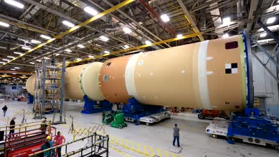 This time-lapse video shows how NASA joined the Space Launch System rocket’s core stage forward assembly with the 130-foot liquid hydrogen tank for the Artemis II mission on March 18. This completes assembly of four of the five large structures that make up the core stage that will help send the first astronauts to lunar orbit on Artemis II. The 66-foot forward assembly consists of the forward skirt, liquid oxygen tank, and the intertank, which were mated earlier. Engineers inserted 360 bolts to connect the forward assembly to the liquid hydrogen tank to make up the bulk of the stage. Only the engine section, which is currently being outfitted and includes the main propulsion systems that connect to the four RS-25 engines, remains to be added to form the final core stage. All parts of the core stage are manufactured by NASA and Boeing, the core stage lead contractor at the agency’s Michoud Assembly Facility. Currently, the team is building core stages for three Artemis missions. The first core stage is stacked with the rest of the SLS rocket, which will launch the Artemis I mission to the Moon this year. Together with its twin solid rocket boosters, the core stage will produce 8.8 million pounds of thrust to send NASA’s Orion spacecraft, astronauts, and supplies beyond Earth’s orbit to the Moon. SLS and Orion form the foundation for Artemis missions and future deep space exploration.