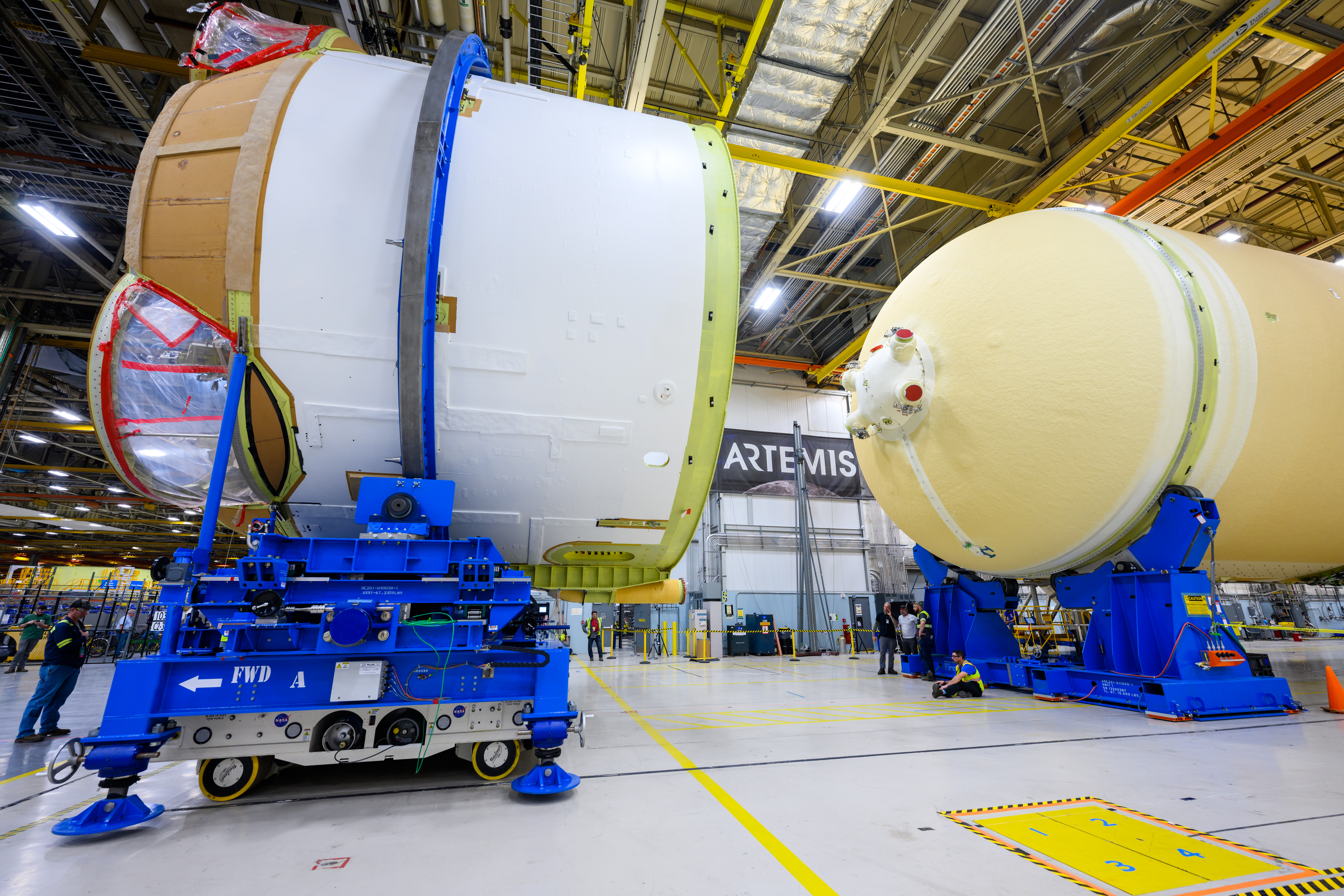 Technicians at NASA’s Michoud Assembly Facility in New Orleans moved the engine section of NASA’s Space Launch System (SLS) rocket for Artemis II, the first crewed mission to the Moon, into position for the final join of the core stage Feb. 22. The engine section is the bottom-most portion of the 212-foot-tall core stage. It is the last of five major elements that is needed to connect the stage into one major structure. In addition to its miles of cabling and hundreds of sensors, the engine section is a crucial attachment point for the four RS-25 engines and two solid rocket boosters that produce a combined 8.8 million pounds of thrust at liftoff and flight. During launch and flight, liquid propellants from the liquid hydrogen tank and liquid oxygen tanks are delivered through the engine section to the four RS-25 engines. The engine section also includes the avionics that help steer the engines after liftoff. Next, teams will join the engine section to the core stage for the second SLS rocket. After the join is complete, teams will begin to add each of the four RS-25 engines one by one to complete the stage. The completely assembled stage with its four RS-25 engines will be shipped to NASA’s Kennedy Space Center in Florida later this year. The SLS rocket is the only rocket capable of carrying astronauts in Orion around the Moon in a single mission.