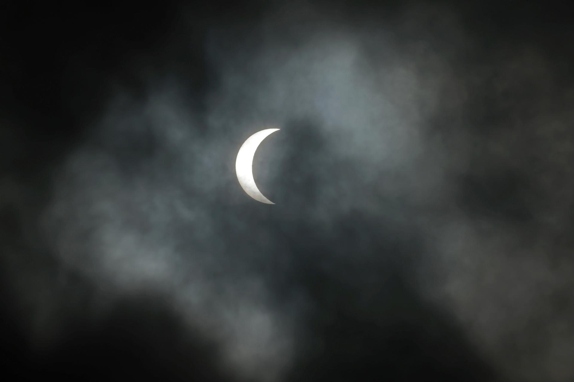 Under mostly overcast skies, the Moon passes in front of the Sun as a partial solar eclipse approaches 85% in New Orleans, home of NASA’s Michoud Assembly Facility, on Monday, April 8, 2024. A total solar eclipse tracked along a narrow strip of the North American continent from Mexico’s Pacific coast to the Atlantic coast of Newfoundland, Canada. A partial solar eclipse was visible across the entire North American continent as well as parts of Europe and Central America. Image credit: NASA/Michael DeMocker