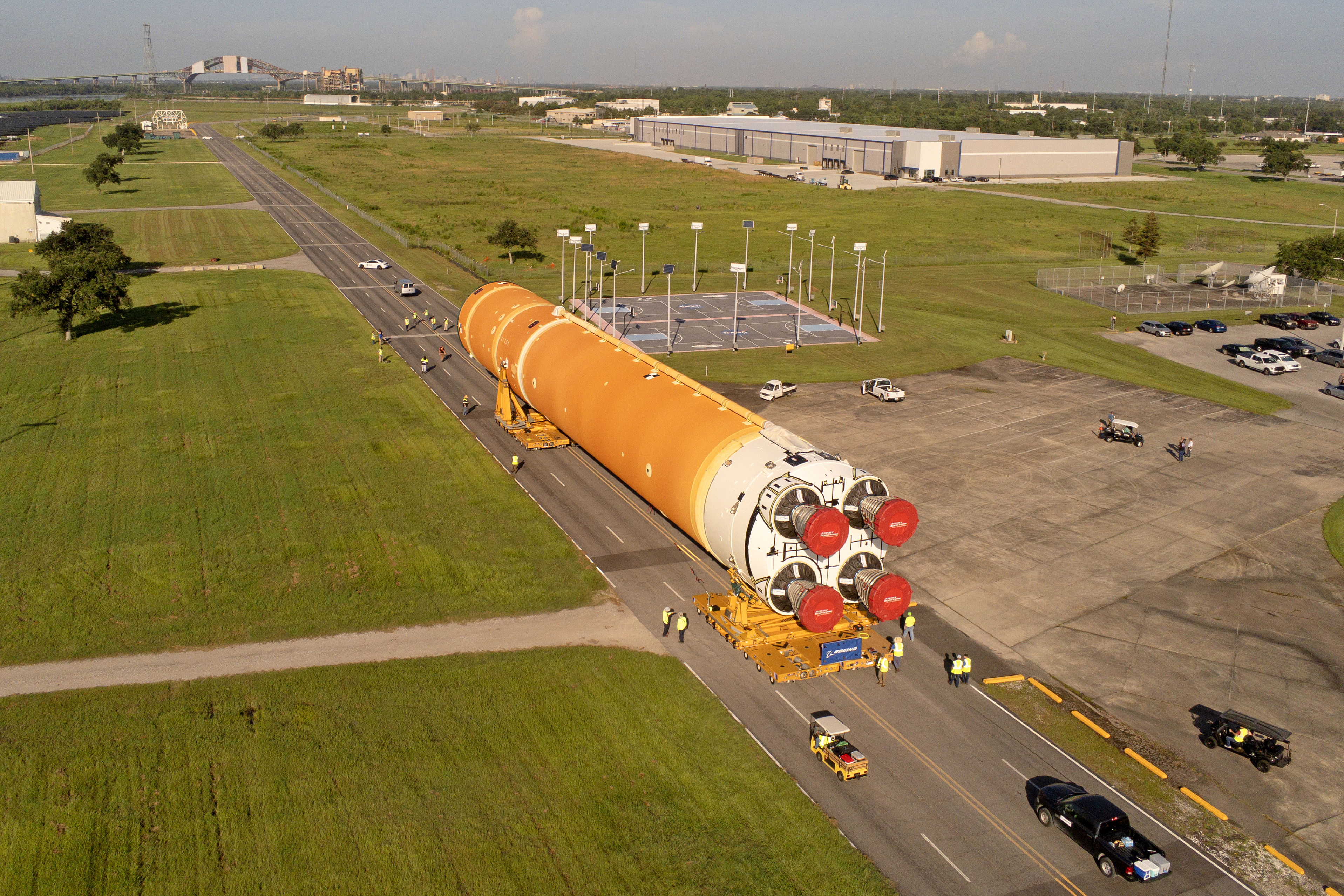 These images and videos show team members moving the first core stage that will help launch the first crewed flight of NASA’s SLS (Space Launch System) rocket for the agency’s Artemis II mission. The move marked the first time a fully assembled Moon rocket stage for a crewed mission has rolled out from NASA’s Michoud Assembly Facility in New Orleans since the Apollo Program, The core stage was moved onto the agency’s Pegasus barge, where it will be ferried to NASA’s Kennedy Space Center in Florida. The core stage for the SLS mega rocket is the largest stage NASA has ever produced. At 212 feet tall, the stage consists of five major elements, including two huge propellant tanks that collectively hold more than 733,000 gallons of super chilled liquid propellant to feed four RS-25 engines at its base. During launch and flight, the stage will operate for just over eight minutes, producing more than 2 million pounds of thrust to help send a crew of four astronauts inside NASA’s Orion spacecraft onward to the Moon. NASA is working to land the first woman, first person of color, and its first international partner astronaut on the Moon under Artemis. SLS is part of NASA’s backbone for deep space exploration, along with the Orion spacecraft and Gateway in orbit around the Moon and commercial human landing systems, next-generation space, next-generational spacesuits, and rovers on the lunar surface. SLS is the only rocket that can send Orion, astronauts, and supplies to the Moon in a single launch.