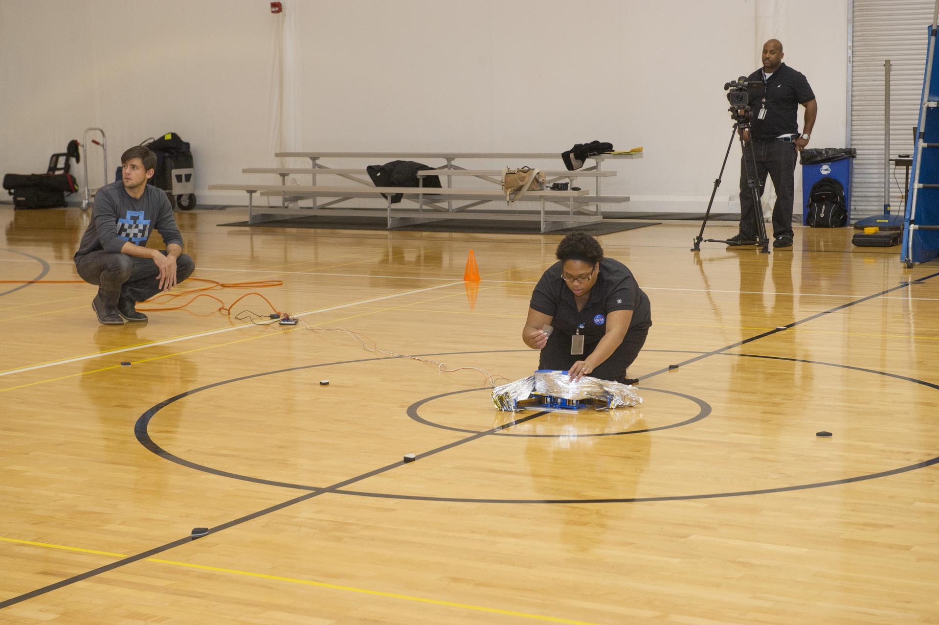 TIFFANY LOCKETT OVERSEES THE HALF SCALE (36 SQUARE METERS) ENGINEERING DEVELOPMENT UNIT (EDU) SOLAR SAIL DEPLOYMENT DEMONSTRATION IN PREPARATION FOR FULL SCALE EDU (86 SQUARE METERS) DEPLOYMENT IN APRIL, 2016