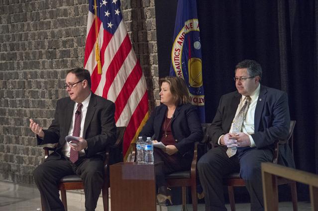 ROBERT LIGHTFOOT, LESA ROE, AND TODD MAY ONSTAGE DURING ALL HANDS MEETING