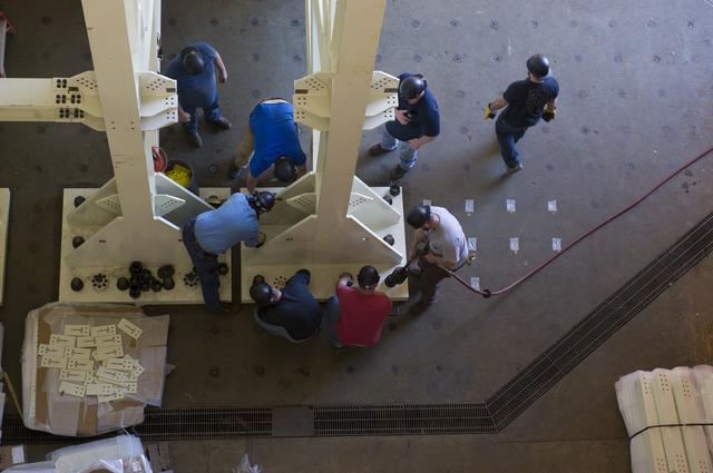 ERECTION OF TWO SLS INTERTANK, (IT), SPECIAL TEST EQUIPMENT, (STE), TOWER PANELS IN BLDG 4619