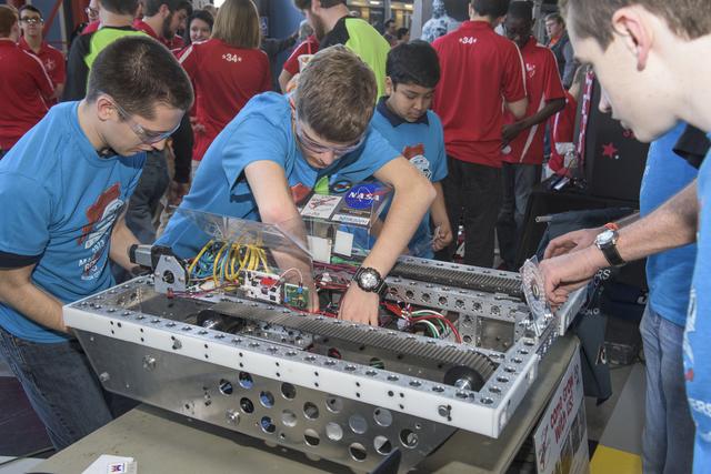 HIGH SCHOOL STUDENTS FROM NORTH ALABAMA GATHER AT THE U.S. SPACE AND ROCKET CENTER'S DAVIDSON CENTER FOR THE "ROBOTS TO ROCKET CITY" EVENT SHOWCASING THEIR INDIVIDUAL ROBOTS PRIOR TO LATER COMPETITIONS.