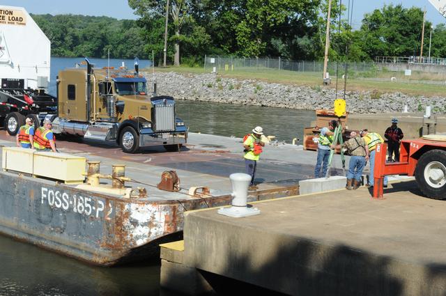 SLS INTERIM CRYOGENIC PROPULSION STAGE TEST ARTICLE ARRIVES AT WEST DOCK ON SHIELDS ROAD AND IS OFF LOADED FROM BARGE