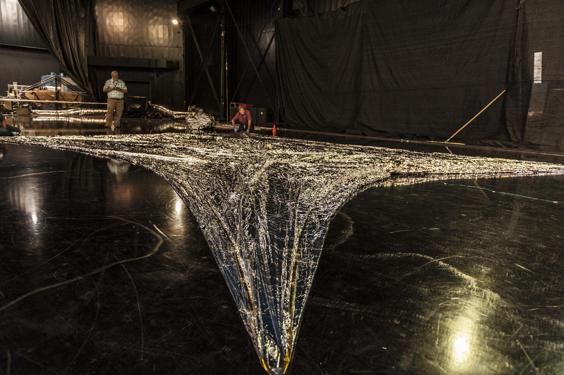 NEAR EARTH ASTEROID (NEA) SAIL TEAM PERFORMING A DEPLOYMENT OF THE FLIGHT-LIKE ENGINEERING DEVELOPMENT UNIT SOLAR SAIL. THE SAIL WAS MANUFACTURED AT NEXOLVE (HSV, AL) AND DEPLOYED FOR THE FIRST TIME AT MSFC ON AUGUST 4TH, 2016
