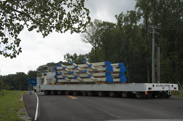SLS ENGINE SECTION PEDESTALS AND THE ENGINE SECTION SPIDER QUADRANTS ARRIVAL AND UNLOADING AT NASA DOCK ON THE TENNESSEE RIVER.