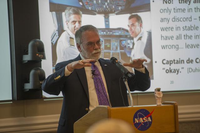 Dale Thomas, retired associate director, technical, of NASA's Marshall Space Flight Center presents during the May 18 Shared Experiences Forum.