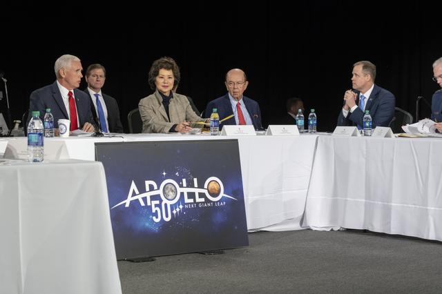 The National Space Council meet in Huntsville, Alabama at the U.S. Space and Rocket Center’s Davidson Center. The meeting was chaired by Vice President Mike Pence with members of the local community, NASA Marshall members and area media in attendance. NASA Administrator Jim Bridenstine addressed the Vice President and the Council on upcoming plans for NASA and the space program.