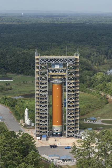 Aerial photograph of MSFC test stand 4693 with the Liquid Hydrogen test article (LH2) in the stand
