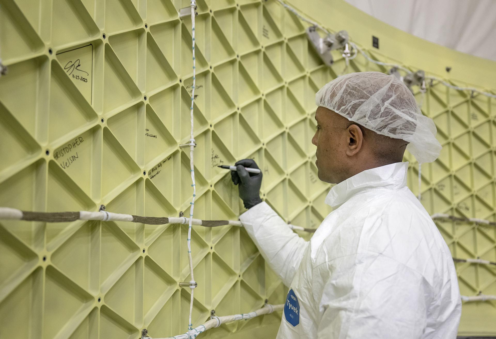 These photos show highlights from Artemis II NASA astronauts Victor Glover, Reid Wiseman, and Christina Koch of NASA and CSA (Canadian Space Agency) astronaut Jeremy Hansen visit to NASA’s Marshall Space Flight Center in Huntsville, Alabama, Nov. 27. The crew met and spoke to employees and viewed facilities for SLS (Space Launch System) rocket. All four astronauts signed the Orion stage adapter (OSA), a small ring structure that connects SLS to NASA’s Orion spacecraft, that will be used for Artemis II. Koch and Wiseman also visited the Systems Integration Lab, where SLS flight software testing is conducted. The four astronauts will launch atop SLS inside Orion to venture around the Moon on Artemis II, the first crewed flight for Artemis.