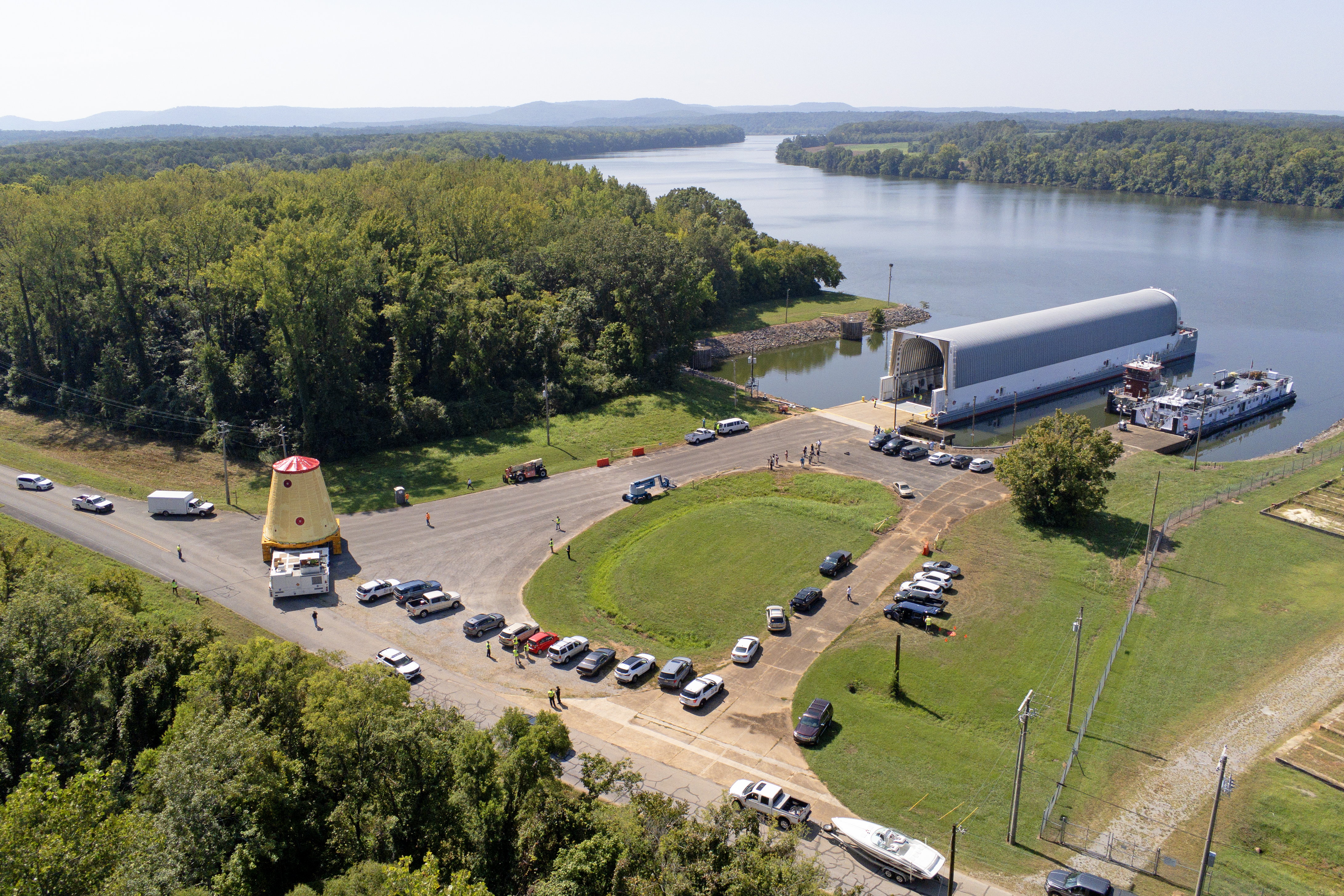 NASA rolled out a key piece of space flight hardware for the SLS (Space Launch System) rocket for the first crewed mission of NASA’s Artemis campaign from Marshall Space Flight Center in Huntsville, Alabama, on Wednesday, Aug. 21 for shipment to the agency’s spaceport in Florida. The cone-shaped launch vehicle stage adapter connects the rocket’s core stage to the upper stage and helps protect the upper stage’s engine that will help propel the Artemis II test flight around the Moon, slated for 2025. Manufactured by prime contractor Teledyne Brown Engineering and the Jacobs Space Exploration Group’s ESSCA (Engineering Services and Science Capability Augmentation) contract using NASA Marshall’s self-reacting friction-stir robotic and vertical weld tools. Crews moved the adapter out of NASA Marshall’s Building 4708 to the agency’s Pegasus barge Aug. 21. The barge will ferry the adapter first to NASA’s Michoud Assembly Facility in New Orleans, where crews will pick up additional SLS hardware for future Artemis missions, before traveling to NASA Kennedy. Once in Florida, the adapter will join the recently delivered core stage. There, teams with NASA’s Exploration Ground Systems will prepare the adapter for stacking and launch.