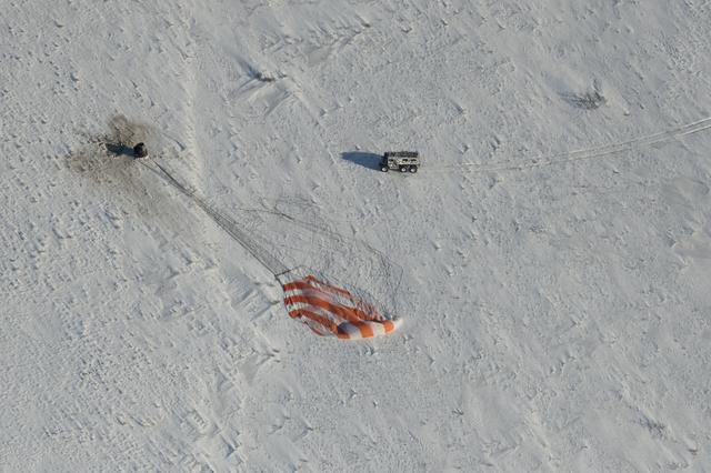 Russian Search and Rescue teams arrive at the Soyuz MS-05 spacecraft shortly after it landed with Expedition 53 Commander Randy Bresnik of NASA and Flight Engineers Paolo Nespoli of ESA (European Space Agency) and Sergey Ryazanskiy of the Russian space agency Roscosmos near the town of Zhezkazgan, Kazakhstan on Thursday, Dec. 14, 2017. Bresnik, Nespoli and Ryazanskiy are returning after 139 days in space where they served as members of the Expedition 52 and 53 crews onboard the International Space Station. Photo Credit: (NASA/Bill Ingalls)