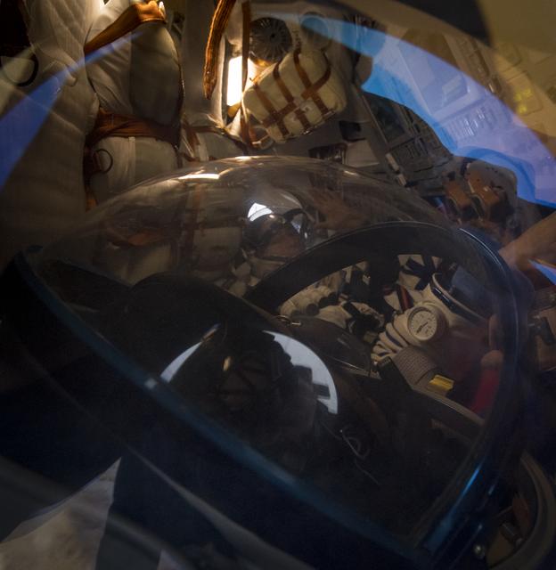 Expedition 54 crew members Joe Acaba and Mark Vande Hei of NASA and cosmonaut Alexander Misurkin are seen inside their Soyuz MS-06 spacecraft shortly after they landed near the town of Zhezkazgan, Kazakhstan on Wednesday, Feb. 28, 2018 (February 27 Eastern time.) Acaba, Vande Hei, and Misurkin are returning after 168 days in space where they served as members of the Expedition 53 and 54 crews onboard the International Space Station. Photo Credit: (NASA/Bill Ingalls)