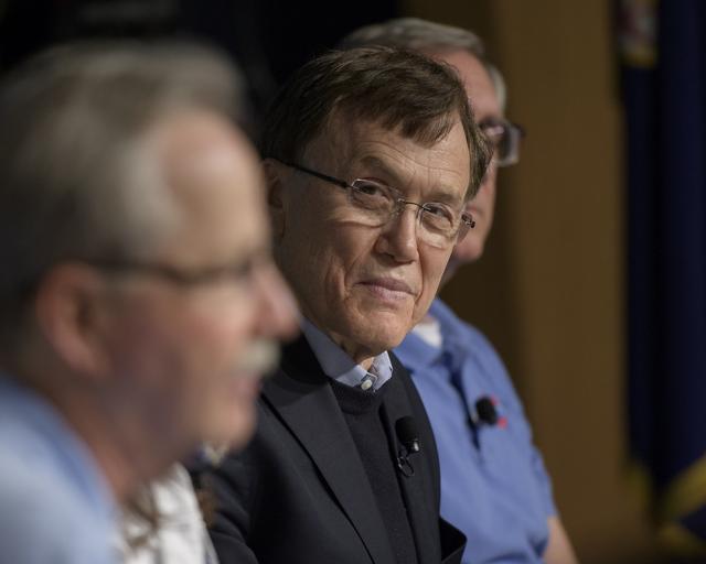 George Ricker, TESS principal investigator, MIT Kavli Institute for Astrophysics and Space Research, is seen during a media briefing where he and other experts discuss the upcoming launch of NASA’s next planet hunter, the Transiting Exoplanet Survey Satellite (TESS), Wednesday, March 28, 2018 at NASA Headquarters in Washington. Photo Credit: (NASA/Bill Ingalls)