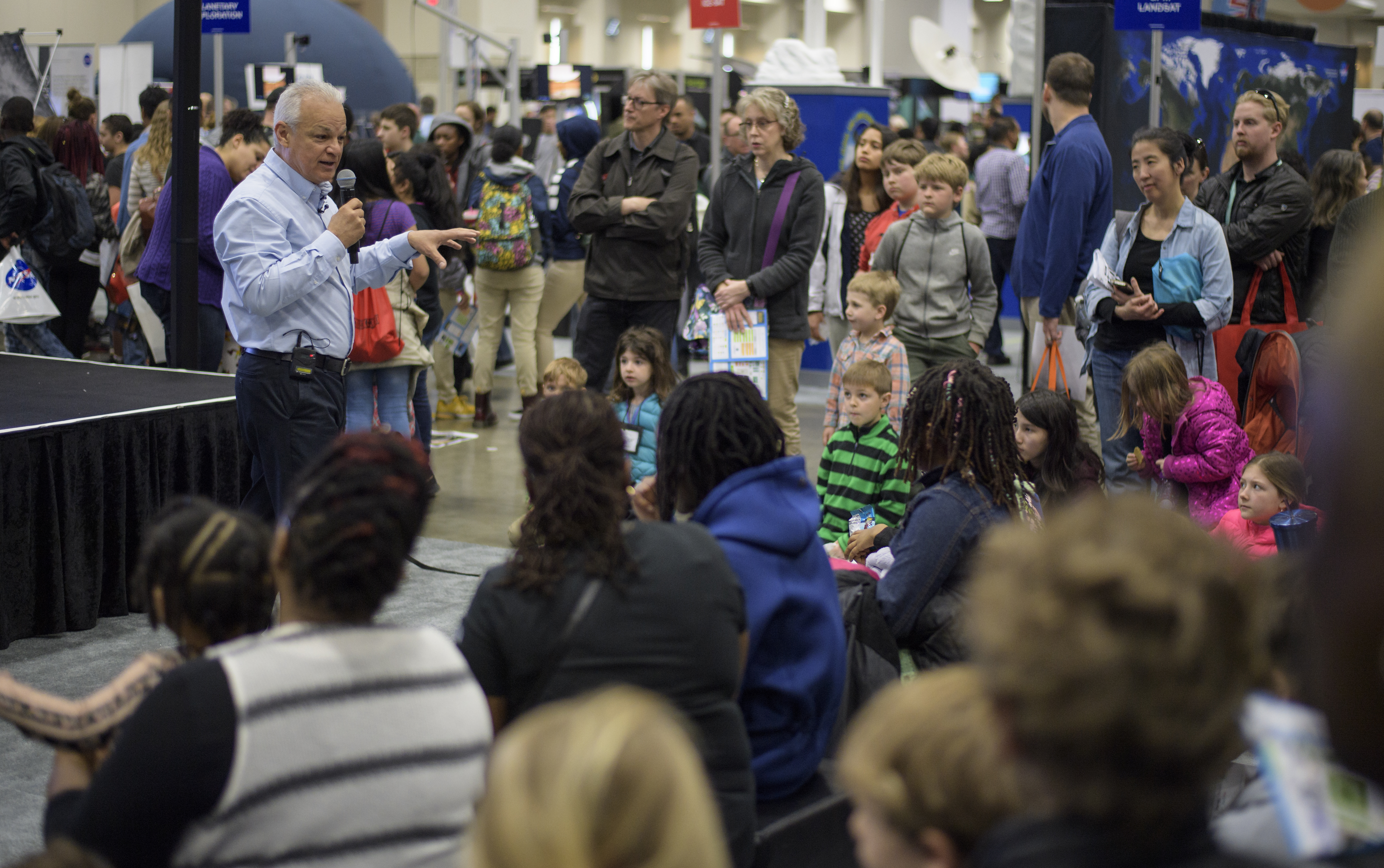 NASA Acting Chief Technologist Douglas Terrier speaks about technology challenges for the Moon, Mars, and beyond during Sneak Peek Friday at the USA Science and Engineering Festival, Friday, April 6, 2018 at the Walter E. Washington Convention Center in Washington, DC. The festival is open to the public April 7-8. Photo Credit: (NASA/Joel Kowsky)