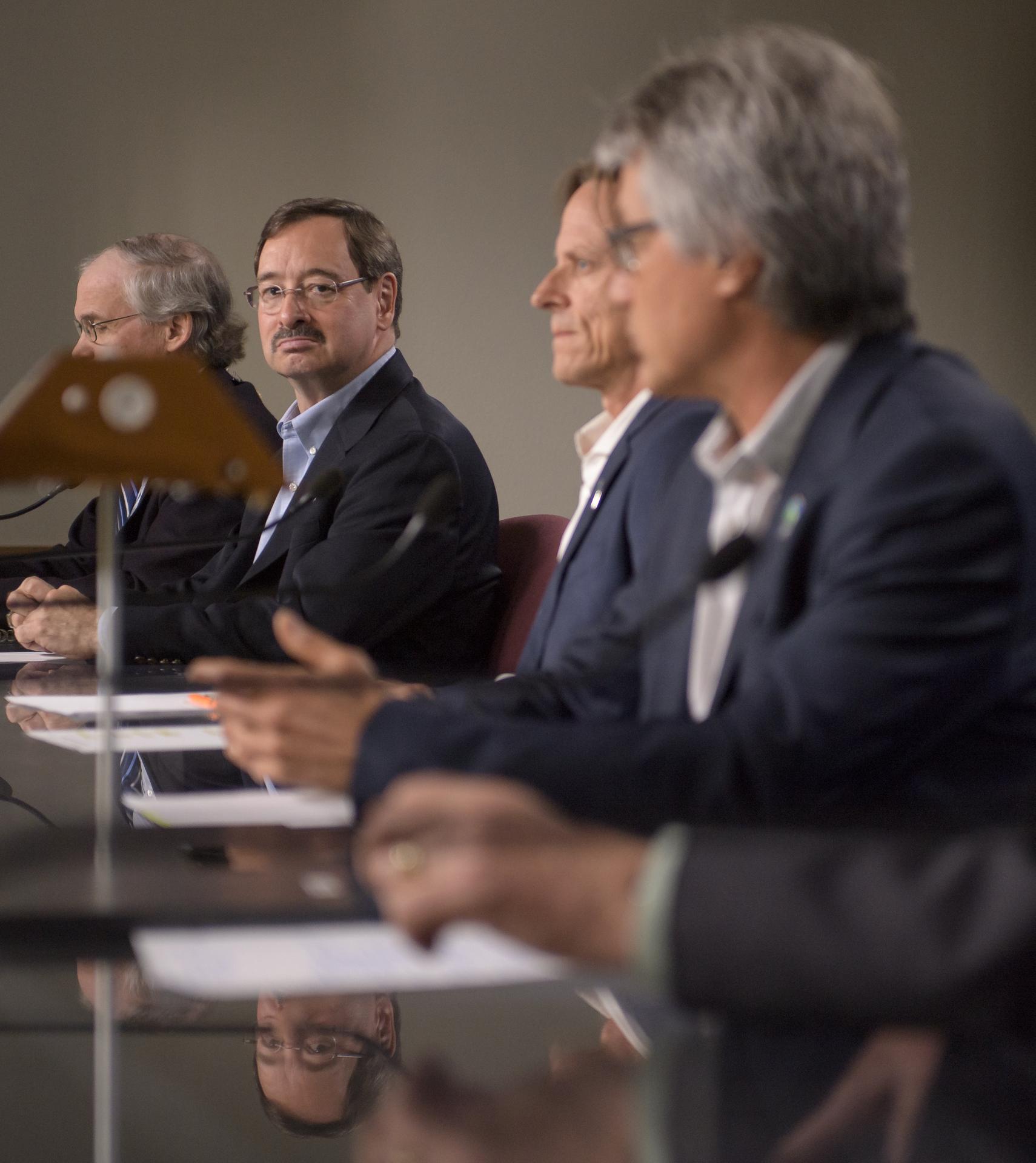 David Jarrett, GRACE-FO program executive in the Earth Science Division at NASA Headquarters is seen during a Gravity Recovery and Climate Experiment Follow-On (GRACE-FO) mission prelaunch media briefing, Monday, May 21, 2018, at Vandenberg Air Force Base in California. The twin GRACE-FO spacecraft will measure changes in how mass is redistributed within and among Earth's atmosphere, oceans, land and ice sheets, as well as within Earth itself. Photo Credit: (NASA/Bill Ingalls)