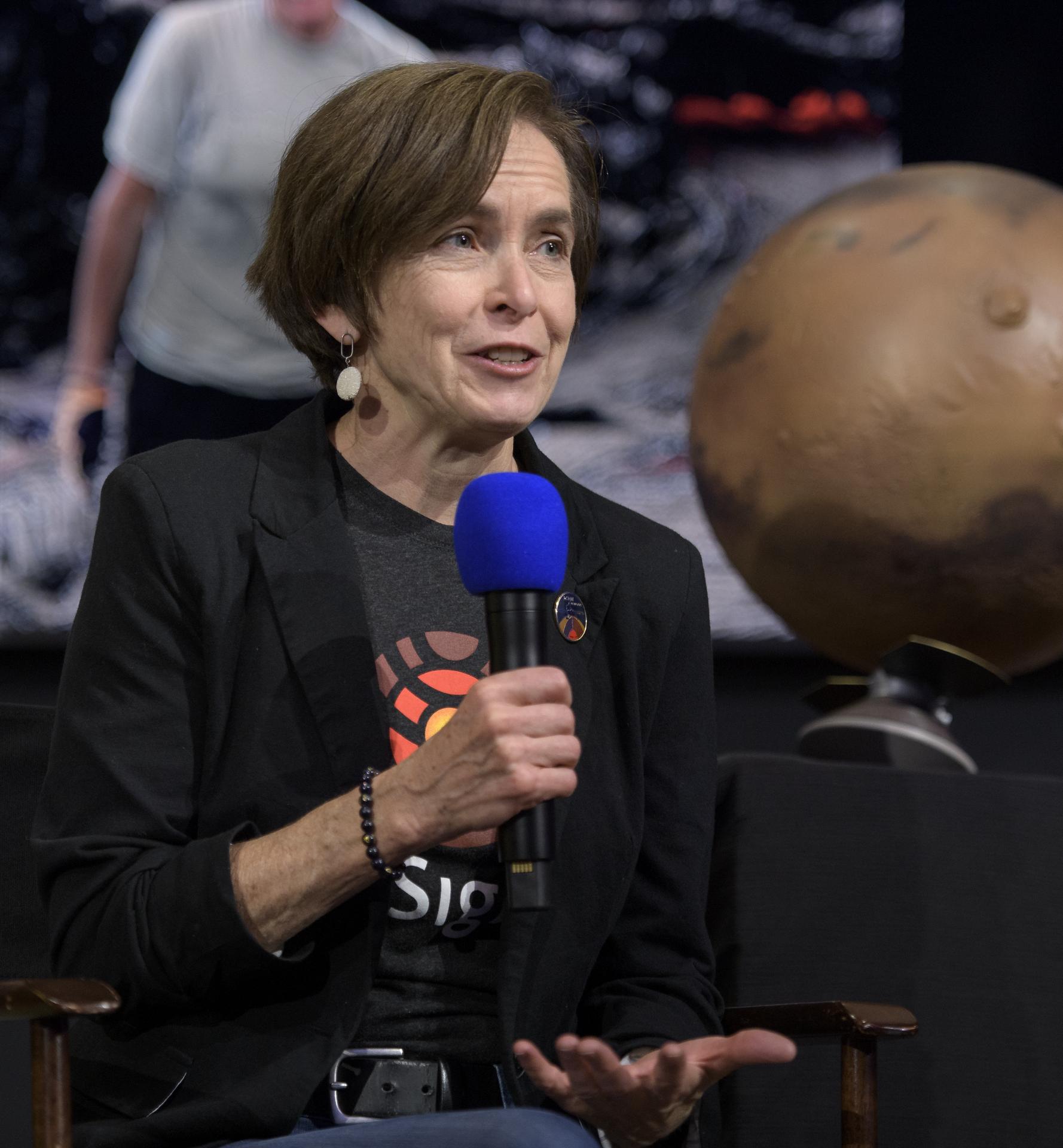 Sue Smrekar, InSight deputy principal investigator, NASA JPL, talks about Mars InSight during a social media briefing, Sunday, Nov. 25, 2018 at NASA's Jet Propulsion Laboratory in Pasadena, California. InSight, short for Interior Exploration using Seismic Investigations, Geodesy and Heat Transport, is a Mars lander designed to study the "inner space" of Mars: its crust, mantle, and core. InSight is scheduled to touch down on the Red Planet at approximately noon PST (3 p.m. EST) on Nov. 26. Photo Credit: (NASA/Bill Ingalls)