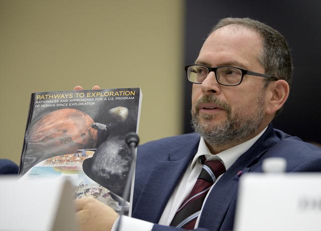 Dr. Jonathan Lunine, Director, Cornell Center for Astrophysics and Planetary Science, Co-Chair of the Former Committee on Human Spaceflight, National Academies of Sciences, Engineering, and Medicine testifies during the House Subcommittee on Space and Aeronautics hearing titled "Keeping our sights on Mars: A Review of NASA's Deep Space Exploration Programs and Lunar Proposal", Wednesday, May 8, 2019 at the Rayburn House Office Building in Washington. Photo Credit: (NASA/Bill Ingalls)