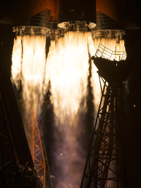 The Soyuz MS-13 rocket is launched with Expedition 60 Soyuz Commander Alexander Skvortsov of Roscosmos, flight engineer Andrew Morgan of NASA, and flight engineer Luca Parmitano of ESA (European Space Agency), Saturday, July 20, 2019 at the Baikonur Cosmodrome in Kazakhstan. Skvortsov, Morgan, and Parmitano launched at 12:28 p.m. Eastern time (9:28 p.m. Baikonur time) to begin their mission to the International Space Station. Photo Credit: (NASA/Joel Kowsky)