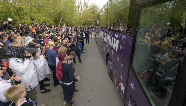 Family, friends, colleagues and media, say farewell to Expedition 61 crewmembers Jessica Meir of NASA and Oleg Skripochka of Roscosmos, and spaceflight participant Hazzaa Ali Almansoori of the United Arab Emirates as they depart the Cosmonaut Hotel ahead of their Soyuz launch to the International Space Station, Wednesday, Sept. 25, 2019 in Baikonur, Kazakhstan. Meir, Skripochka, and Almansoori will launch on the Soyuz MS-15 spacecraft from the Baikonur Cosmodrome to the International Space Station. Photo Credit: (NASA/Bill Ingalls)