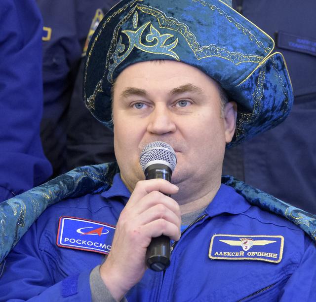 Expedition 60 cosmonaut Alexey Ovchinin of Roscosmos attends a Karaganda Airport welcome ceremony in Kazakhstan on Thursday, Oct. 3, 2019. Expedition 60 crewmembers Ovchinin and Nick Hague of NASA are returning after 203 days in space where they served as members of the Expedition 59 and 60 crews onboard the International Space Station. Almansoori logged 8 days in space during his first flight as an astronaut. Photo Credit: (NASA/Bill Ingalls)