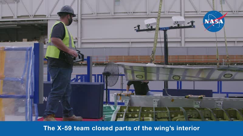 NASA has reached a major milestone. The team putting together NASA's X-59 Quiet SuperSonic Technology airplane at Lockheed Martin's Skunk Works factory in Palmdale, California, finished major work on the wing. The wing section is considered the structural backbone of the aircraft. The X-59 team closed parts of the wing's interior that are intended to never be touched again by human hands. Moving at a steady pace, technicians continue to work on many parts of the aircraft simultaneously. The forebody section of the aircraft will carry the pilot needed to fly the aircraft and all the avionics. The aft part of the aircraft will hold an F414 GE engine and other critical systems. The assembly process will continue as the team pushes to the next major milestone, which is merging all three major sections of the aircraft in the spring of 2021.