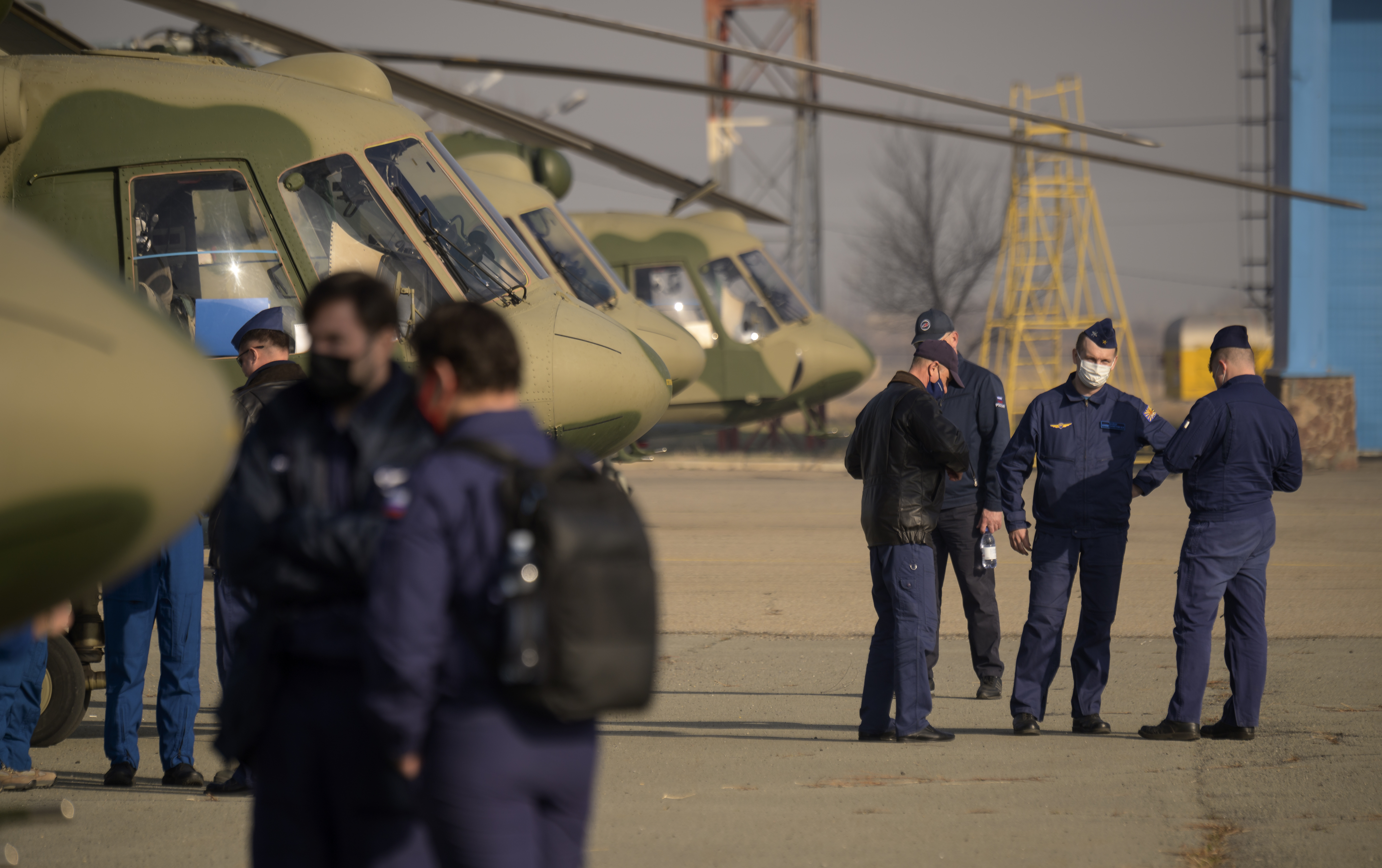 NASA, Roscosmos, and Russian Search and Recovery Forces prepare to depart the Zhezkazgan Airport in Kazakhstan for the Soyuz MS-17 landing of Expedition 64 crew members Kate Rubins of NASA, Sergey Ryzhikov and Sergey Kud-Sverchkov of Roscosmos, Saturday, April 17, 2021. Rubins, Ryzhikov and Kud-Sverchkov returned after 185 days in space having served as Expedition 63-64 crew members onboard the International Space Station. Photo Credit: NASA/Bill Ingalls