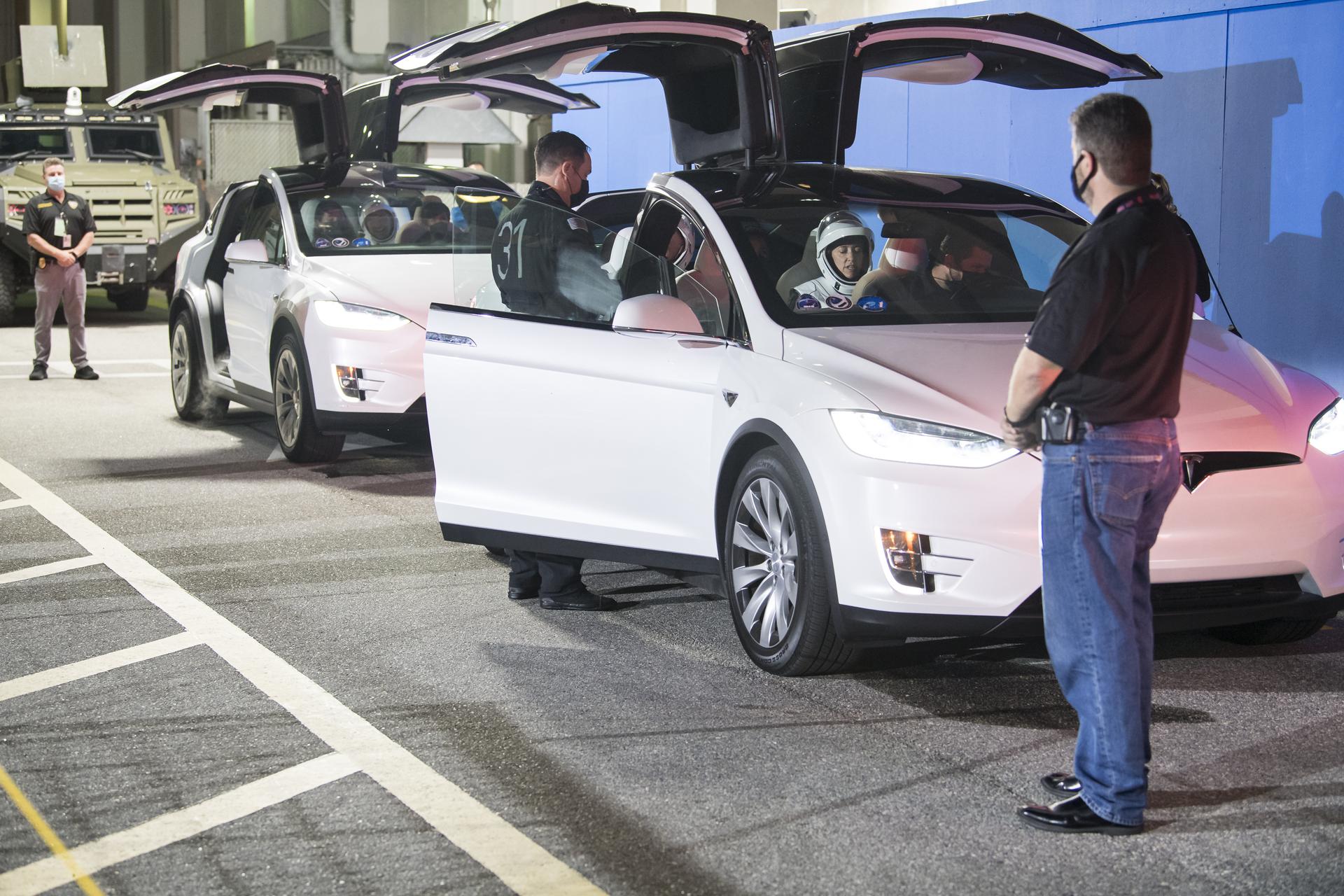 NASA astronauts Megan McArthur, Shane Kimbrough, and ESA (European Space Agency) astronaut Thomas Pesquet, and Japan Aerospace Exploration Agency (JAXA) astronaut Akihiko Hoshide, wearing SpaceX spacesuits, are seen as they prepare to depart the Neil A. Armstrong Operations and Checkout Building for Launch Complex 39A during a dress rehearsal prior to the Crew-2 mission launch, Sunday, April 18, 2021, at NASA’s Kennedy Space Center in Florida. NASA’s SpaceX Crew-2 mission is the second operational mission of the SpaceX Crew Dragon spacecraft and Falcon 9 rocket to the International Space Station as part of the agency’s Commercial Crew Program. Kimbrough, McArthur, Pesquet, and Hoshide are scheduled to launch at 6:11 a.m. ET on Thursday, April 22, from Launch Complex 39A at the Kennedy Space Center. Photo Credit: (NASA/Aubrey Gemignani)