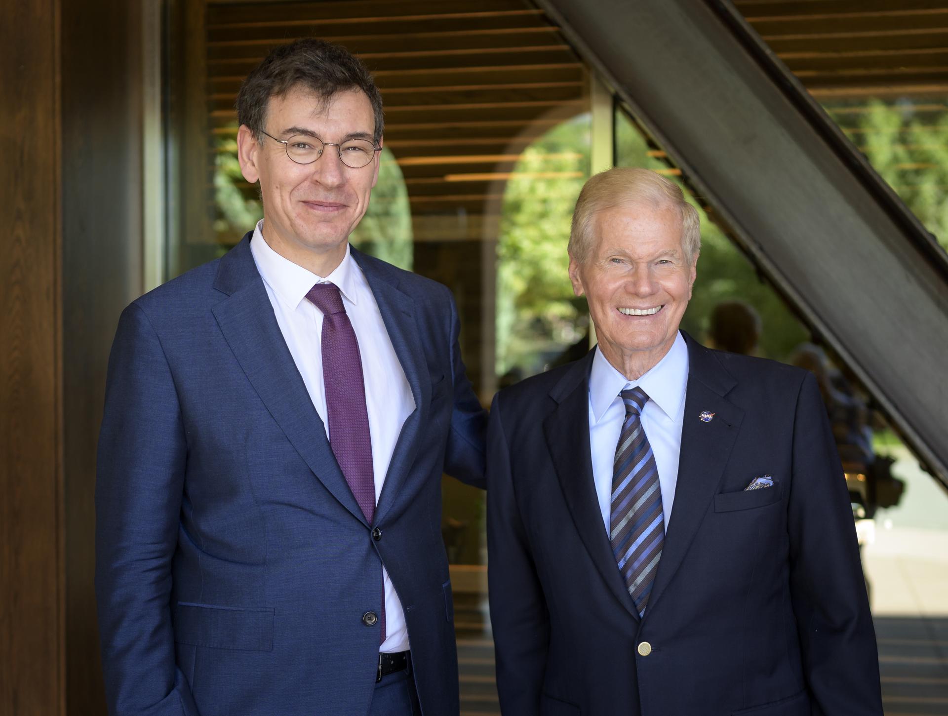 Philippe Baptiste, Chairman and CEO, Centre National d’Etudes Spatiales (CNES), left and NASA Administrator Bill Nelson pose for a photograph prior to a bilateral meeting during the 36th Space Symposium, Wednesday, Aug. 25, 2021, in Colorado Springs, Colorado. Photo Credit: (NASA/Bill Ingalls)