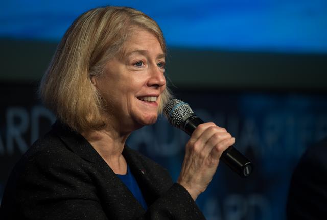 NASA Deputy Administrator Pam Melroy speaks during a NASA town hall to discuss the reorganization of the Human Exploration and Operations Mission Directorate into two mission directorates: Exploration Systems Development Mission Directorate (ESDMD) and Space Operations Mission Directorate (SpaceOps), Tuesday, Sept. 21, 2021 at the Mary W. Jackson NASA Headquarters building in Washington. NASA Associate Administrator for SpaceOps, Kathy Lueders, will lead launch and space operations including the International Space Station, the commercialization of low-Earth orbit, and eventually operations on and around the Moon. NASA Associate Administrator for the ESDMD, Jim Free, will lead efforts to define and manage systems development for programs critical to NASA’s Artemis program and the planning of NASA’s Moon to Mars exploration. Photo Credit: (NASA/Aubrey Gemignani)