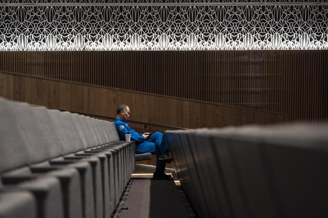 Japan Aerospace Exploration Agency (JAXA) astronaut Soichi Noguchi takes a break in the Oprah Winfrey Theater during a tour of the National Museum of African American History and Culture with fellow SpaceX Crew-1 NASA astronauts, Shannon Walker, Victor Glover, and Mike Hopkins, Tuesday, Nov. 16, 2021, in Washington. Hopkins, Glover, Walker, and Noguchi launched on the first crew rotation mission to the International Space Station for SpaceX’s Falcon 9 and Crew Dragon spacecraft as part of the agency’s Commercial Crew Program and spent 168 days in space across Expeditions 64 and 65. Photo Credit: (NASA/Aubrey Gemignani)