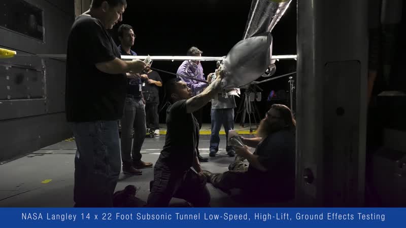 Instrumentation technicians perform installation measures on the trans-sonic truss-braced wing (TTBW) model in NASA Langley Research Center’s 14x22 subsonic wind tunnel in Hampton, Virginia. The unique design of the aircraft’s wings reduces drag during flight, which in turn reduces fuel consumption by up to 10%. This concept is part of an ongoing initiative by NASA, industry partners, and academia to make the future of aviation more environmentally friendly through the Sustainable Flight National Partnership (SFNP). The SFNP will expand research for sustainable aviation by developing and testing new technologies for aircraft, new automation tools for greener and safer airspace operations, and sustainable energy options for aircraft propulsion. The TTBW will undergo a variety of aerodynamic testing as researchers continue to test key flight components such as increased lift and reduced drag.