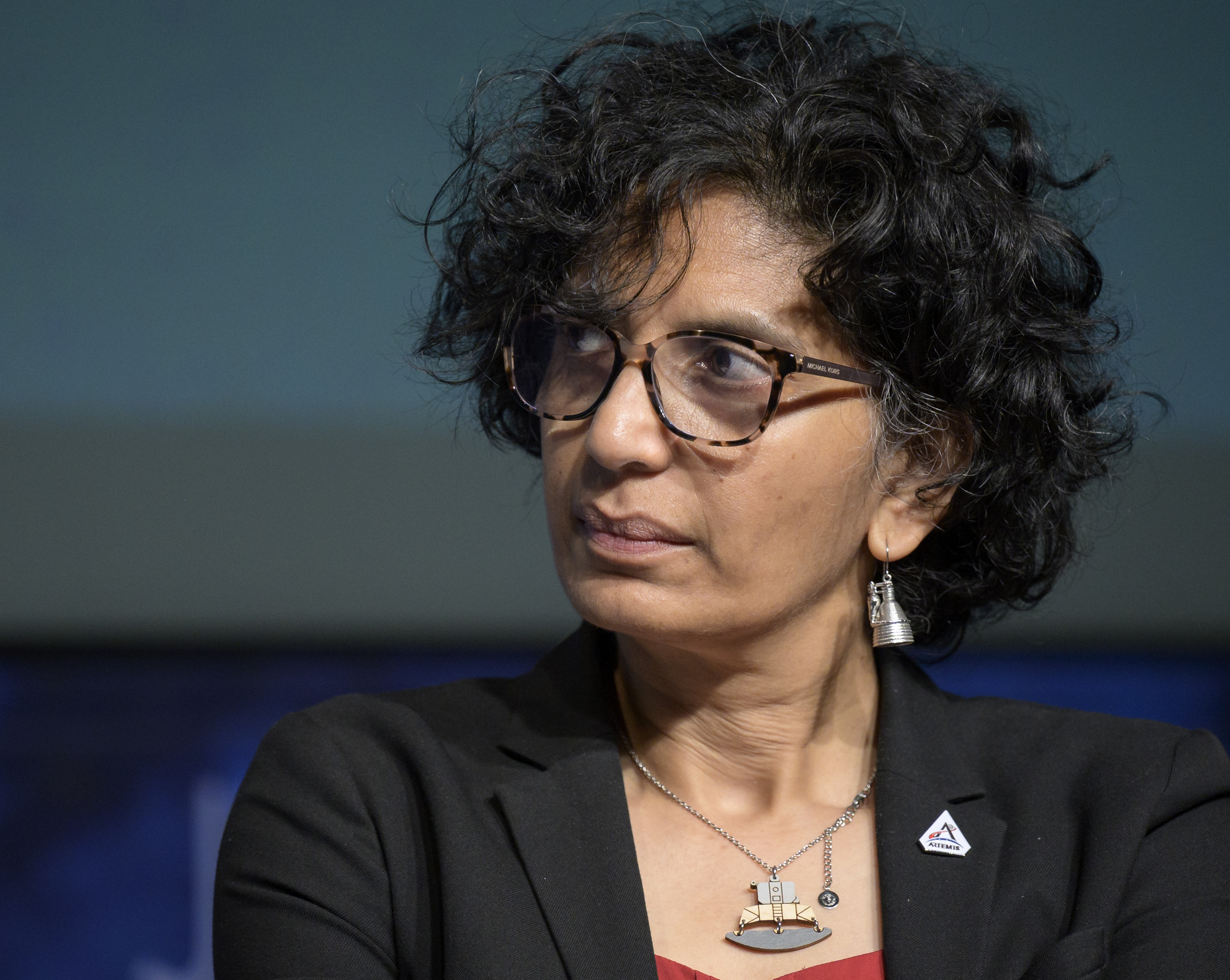 Bhavya Lal, associate administrator for technology, policy, and strategy at NASA Headquarters is seen during a NASA briefing on the Artemis I Moon mission, Wednesday, Aug. 3, 2022, at the Mary W. Jackson NASA Headquarters building in Washington. NASA’s Artemis I mission is the first integrated test of the agency’s deep space exploration systems: the Orion spacecraft, Space Launch System rocket, and supporting ground systems. Launch of the uncrewed flight test is targeted for no earlier than Monday, Aug. 29. Photo Credit: (NASA/Bill Ingalls)