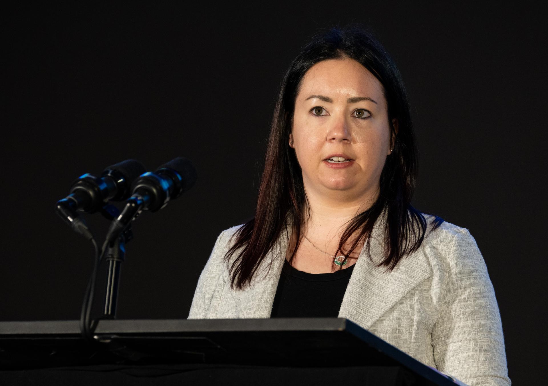 Laura Judd, associate program manager for the Applied Sciences Health and Air Quality Applications in the Applied Sciences Program of NASA’s Earth Science Division, speaks during a briefing on NASA’s TEMPO (Tropospheric Emissions: Monitoring of Pollution) instrument, Tuesday, March 14, 2023 at the Smithsonian’s National Air and Space Museum in Washington. NASA’s TEMPO instrument, the first Earth Venture Instrument mission, will measure air pollution across North America from Mexico City to the Canadian oil sands and from the Atlantic to the Pacific hourly and at a high spatial resolution. A partnership between NASA and the Center for Astrophysics | Harvard & Smithsonian, TEMPO will launch on a commercial satellite to geostationary orbit as early as April. Photo Credit: (NASA/Joel Kowsky)