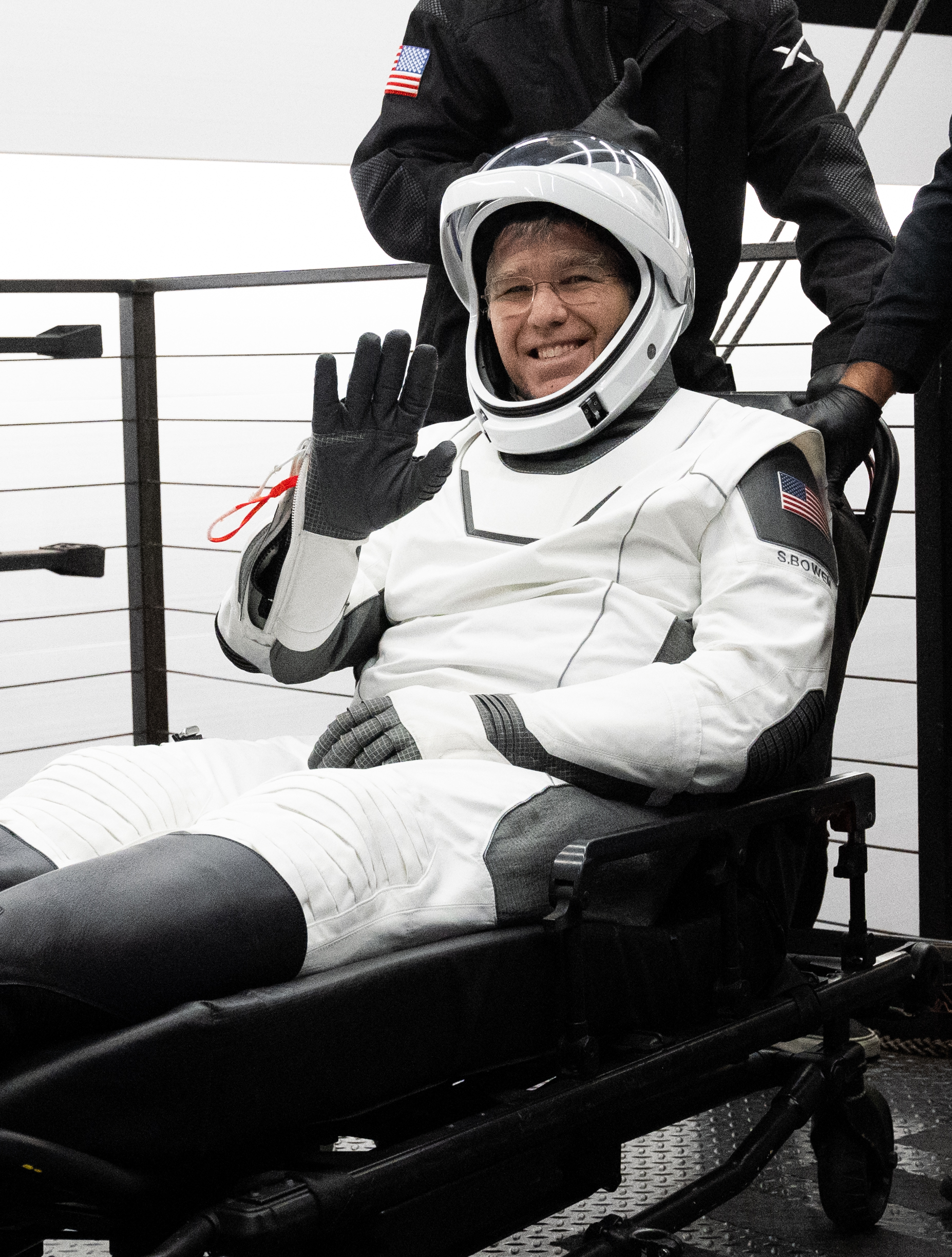 NASA astronaut Stephen Bowen is helped out of the SpaceX Dragon Endeavour spacecraft onboard the SpaceX recovery ship MEGAN after he, NASA astronaut Warren "Woody" Hoburg, UAE (United Arab Emirates) astronaut Sultan Alneyadi, and Roscosmos cosmonaut Andrey Fedyaev landed in the Atlantic Ocean off the coast of Jacksonville, Florida, Monday, Sept. 4, 2023. Bowen, Hoburg, Alneyadi, and Fedyaev are returning after nearly six-months in space as part of Expedition 69 aboard the International Space Station. Photo Credit: (NASA/Joel Kowsky)