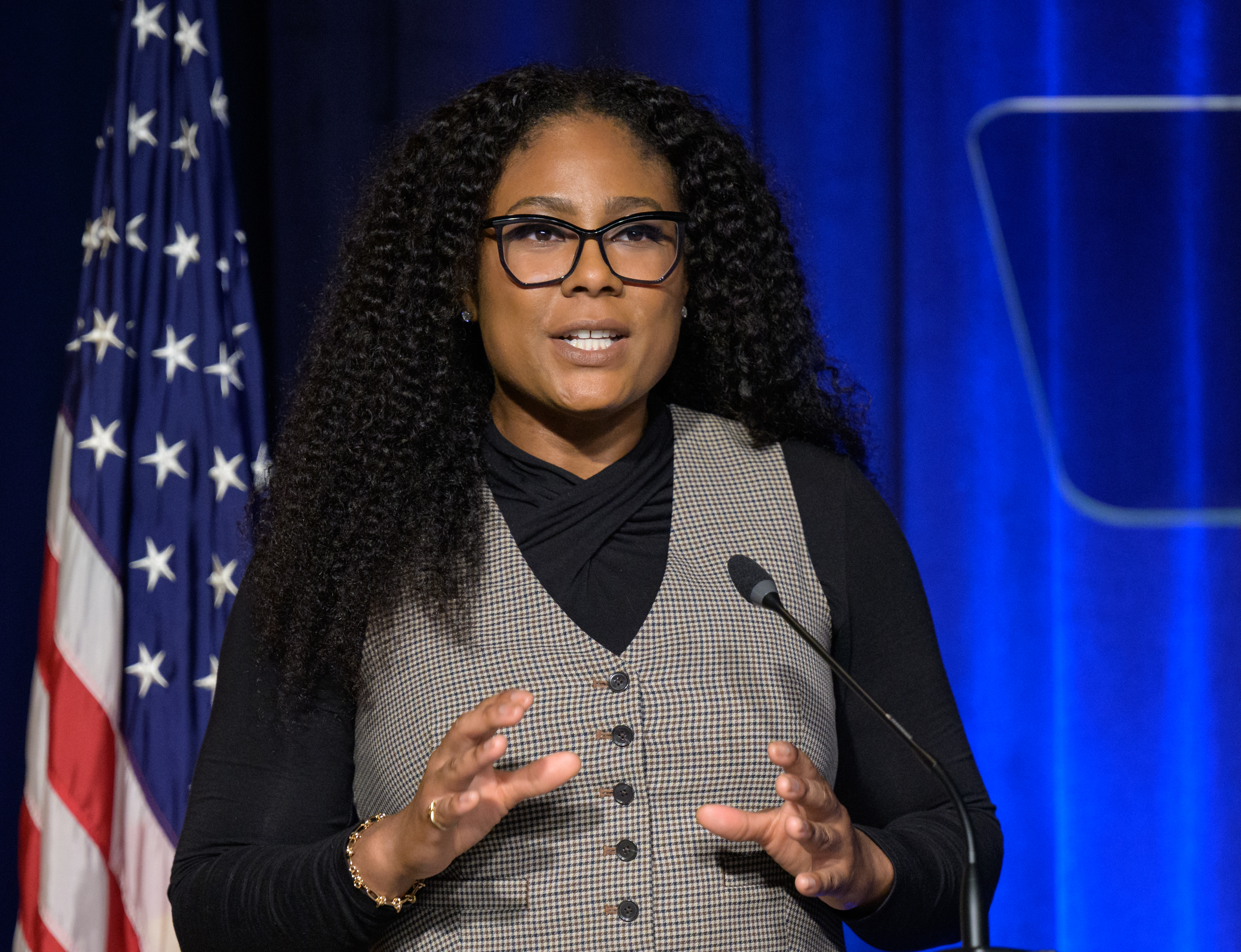 NASA Public Affairs Specialist Melissa Howell moderates a NASA employee town hall on how the agency is using and developing Artificial Intelligence (AI) tools to advance missions and research, Wednesday, May 22, 2024, at the NASA Headquarters Mary W. Jackson Building in Washington. Photo Credit: (NASA/Bill Ingalls)