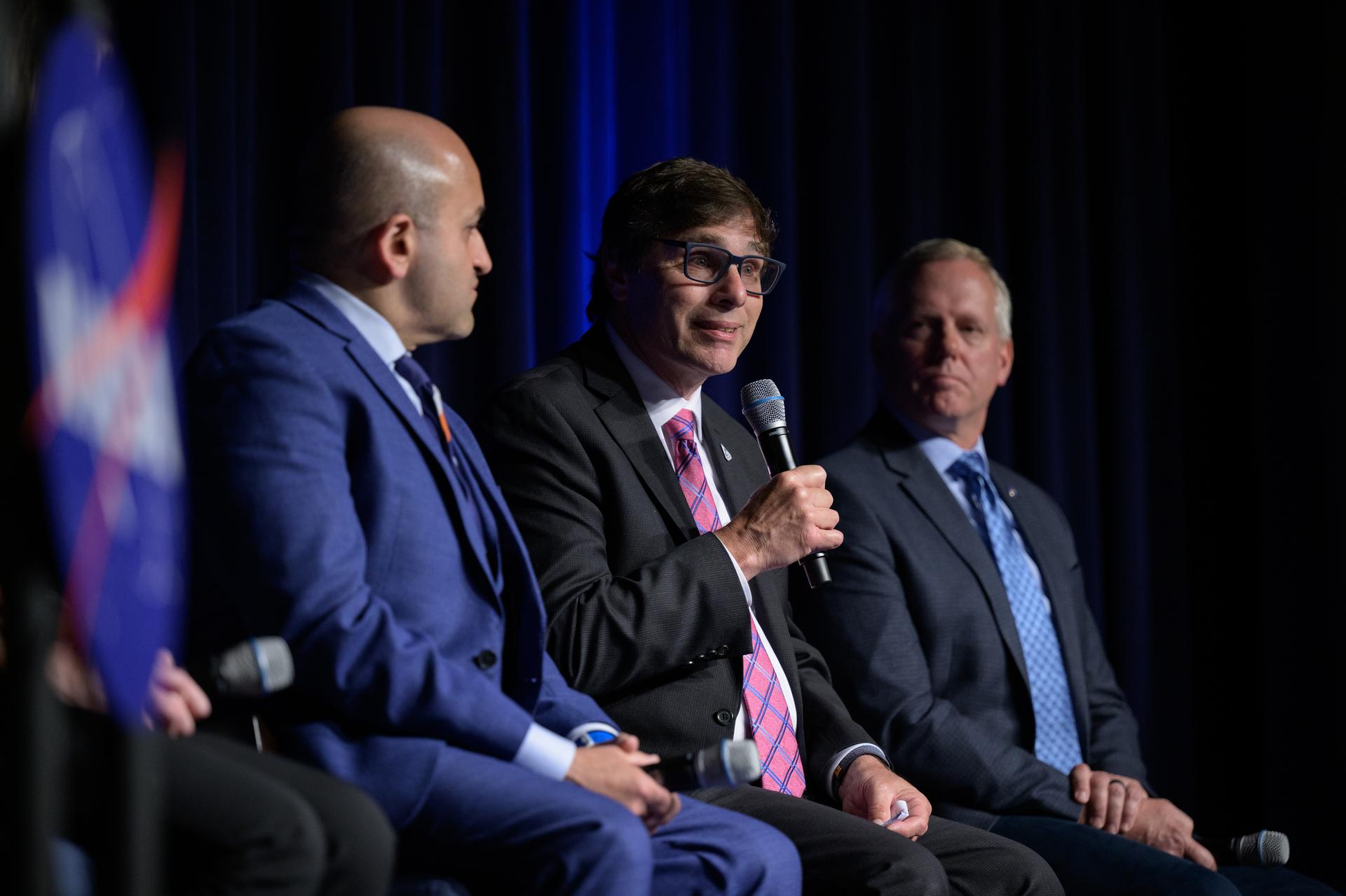 NASA Chief Artificial Intelligence Officer David Salvagnini, center, gives remarks in a NASA employee town hall on how the agency is using and developing Artificial Intelligence (AI) tools to advance missions and research, Wednesday, May 22, 2024, at the NASA Headquarters Mary W. Jackson Building in Washington. Photo Credit: (NASA/Bill Ingalls)
