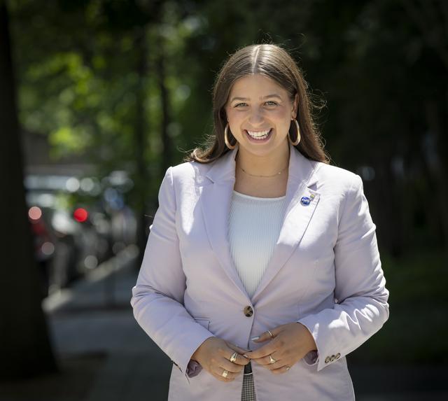 “I feel that my larger purpose at NASA, which I've felt since I came on as an intern, is to leave NASA a better place than I found it. I know there are so many people who are just like myself, who have had this big, huge dream of being at NASA from some sort of spark in their childhood. I have a privilege as a well-spoken, affable, femme, white woman and I’m compelled to use this privilege for good — to advocate for others. I feel like this dream should be achievable for anyone who has the merit to be here without wondering 'Are my needs going [to] be met?' Or, 'If I'm a part of a particular community, will I be faced with any sort of backlash because of the culture?' As an Agency, we're trying to do incredibly hard things moving forward. And going forward, I choose to use the privilege of being at HQ and being very close to leadership as a vessel for progress to help ensure we get closer to everybody having the right to achieve their dream here." NASA Management and Program Analyst Mallory Carbon, poses for a portrait, Wednesday, May 29, 2024, outside the NASA Headquarters Mary W. Jackson Building in Washington. Photo Credit: (NASA/Bill Ingalls)