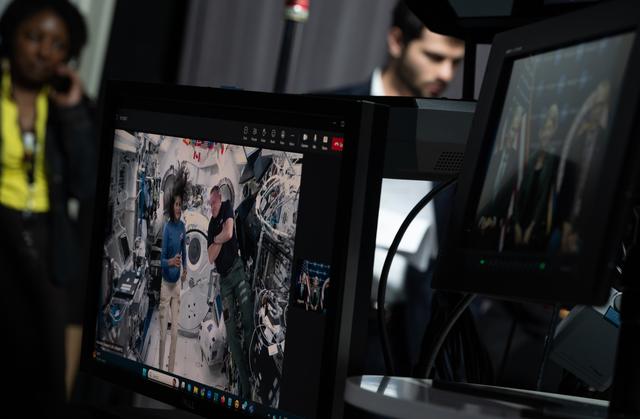 NASA’s Boeing Crew Flight Test crew members Suni Williams, left, and Butch Wilmore are seen aboard the International Space Station on a monitor during an Earth-to-space call with NASA Administrator Bill Nelson, NASA Deputy Administrator Pam Melroy, NASA Associate Administrator Jim Free, and Johnson Space Center Director Vanessa Wyche, Monday, June 10, 2024 at the Mary W. Jackson NASA Headquarters building in Washington. Nelson, Melroy, Free, and Wyche spoke to Wilmore and Williams about their mission aboard Boeing’s Starliner Spacecraft. Photo Credit: (NASA/Joel Kowsky)