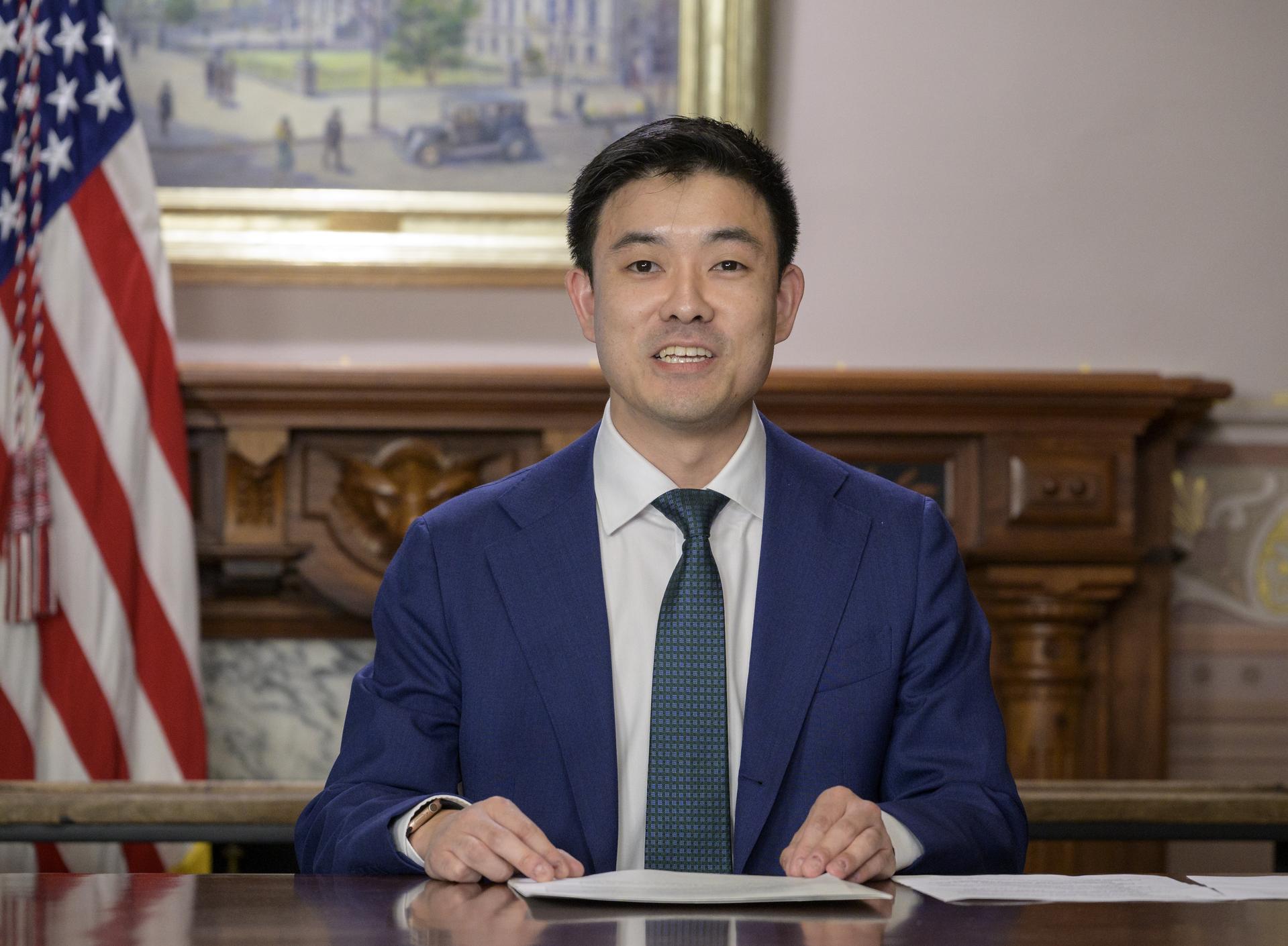 Kota Mizutani, Senior Advisor at the White House office of Public Engagement, is seen kicking off an Earth-to-space call between Chirag Parikh, Deputy Assistant to the President and Executive Secretary of the National Space Council, and NASA’s Boeing Crew Flight Test crew members Butch Wilmore and Suni Williams aboard the International Space Station, Monday, June 10, 2024 at the Eisenhower Executive Office Building in Washington. Parikh spoke to Wilmore and Williams about their mission aboard Boeing’s Starliner Spacecraft. Photo Credit: (NASA/Bill Ingalls)