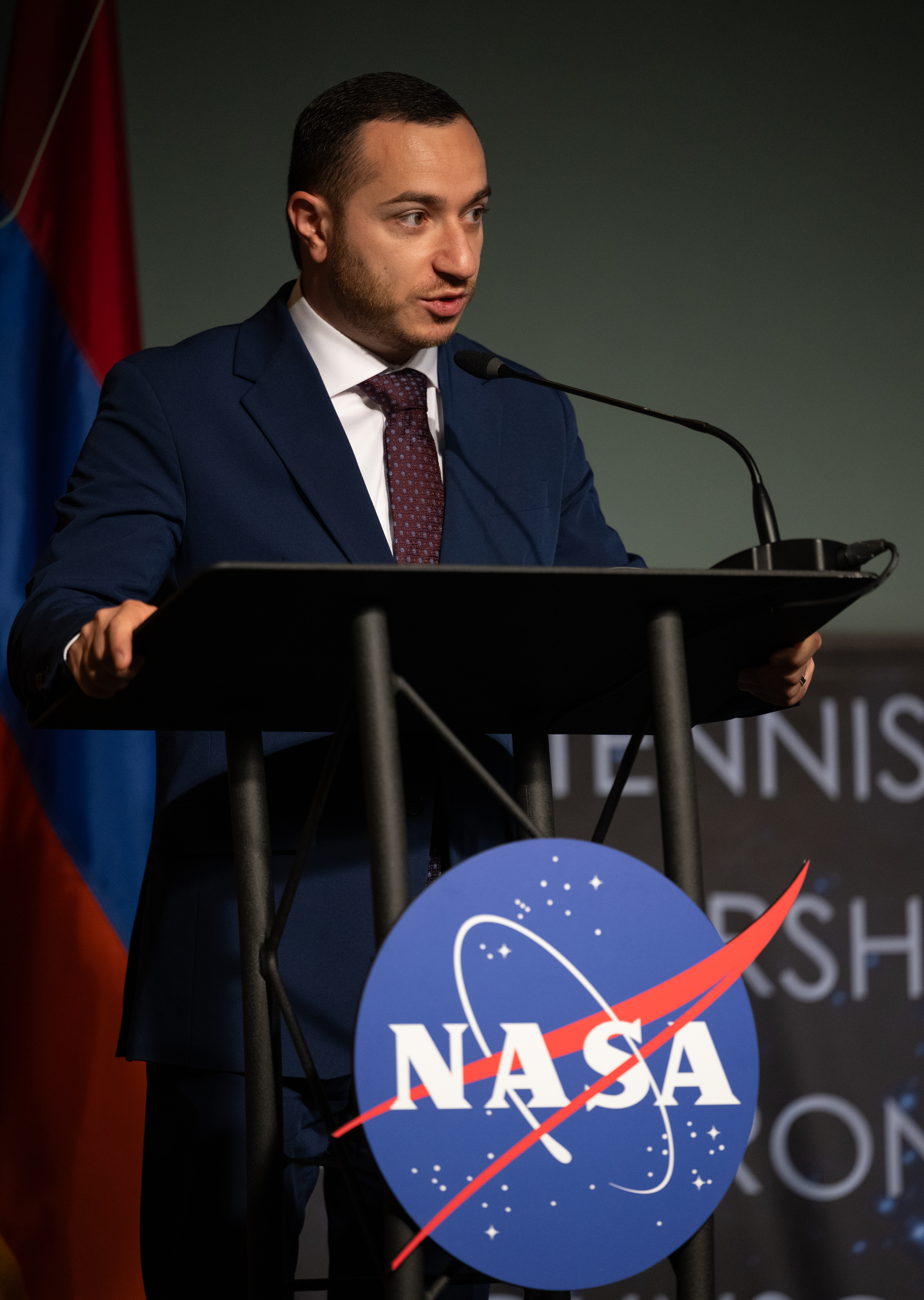 Mkhitar Hayrapetyan, Minister of High-Tech Industry of the Republic of Armenia delivers remarks during an Artemis Accords signing ceremony, Wednesday, June 12, 2024, at the Mary W. Jackson NASA Headquarters building in Washington. The Republic of Armenia is the 43rd country to sign the Artemis Accords, which establish a practical set of principles to guide space exploration cooperation among nations participating in NASA’s Artemis program. Photo Credit: (NASA/Joel Kowsky)
