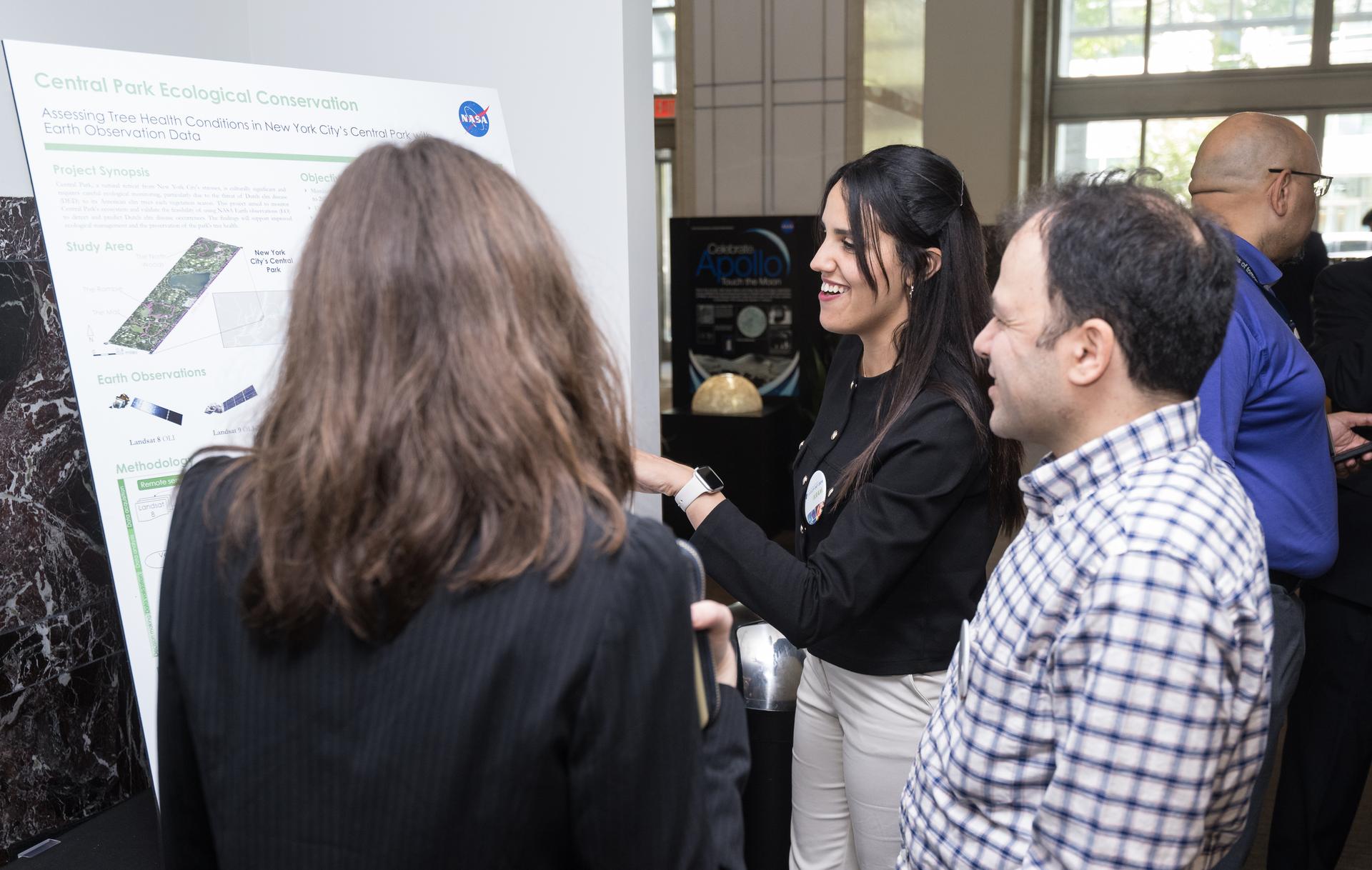 Ikram Morso speaks about her project, Central Park Ecological Conservation, Tuesday, August 6, 2024, at the Mary W. Jackson NASA Headquarters building in Washington. Every summer early career researchers from NASA’s DEVELOP National Program come to NASA Headquarters and present their research projects. DEVELOP is a training and development program where early career researchers work on Earth science projects, mentored by science advisors from NASA and partner agencies, and provide research results to local communities. Photo Credit: (NASA/Aubrey Gemignani)