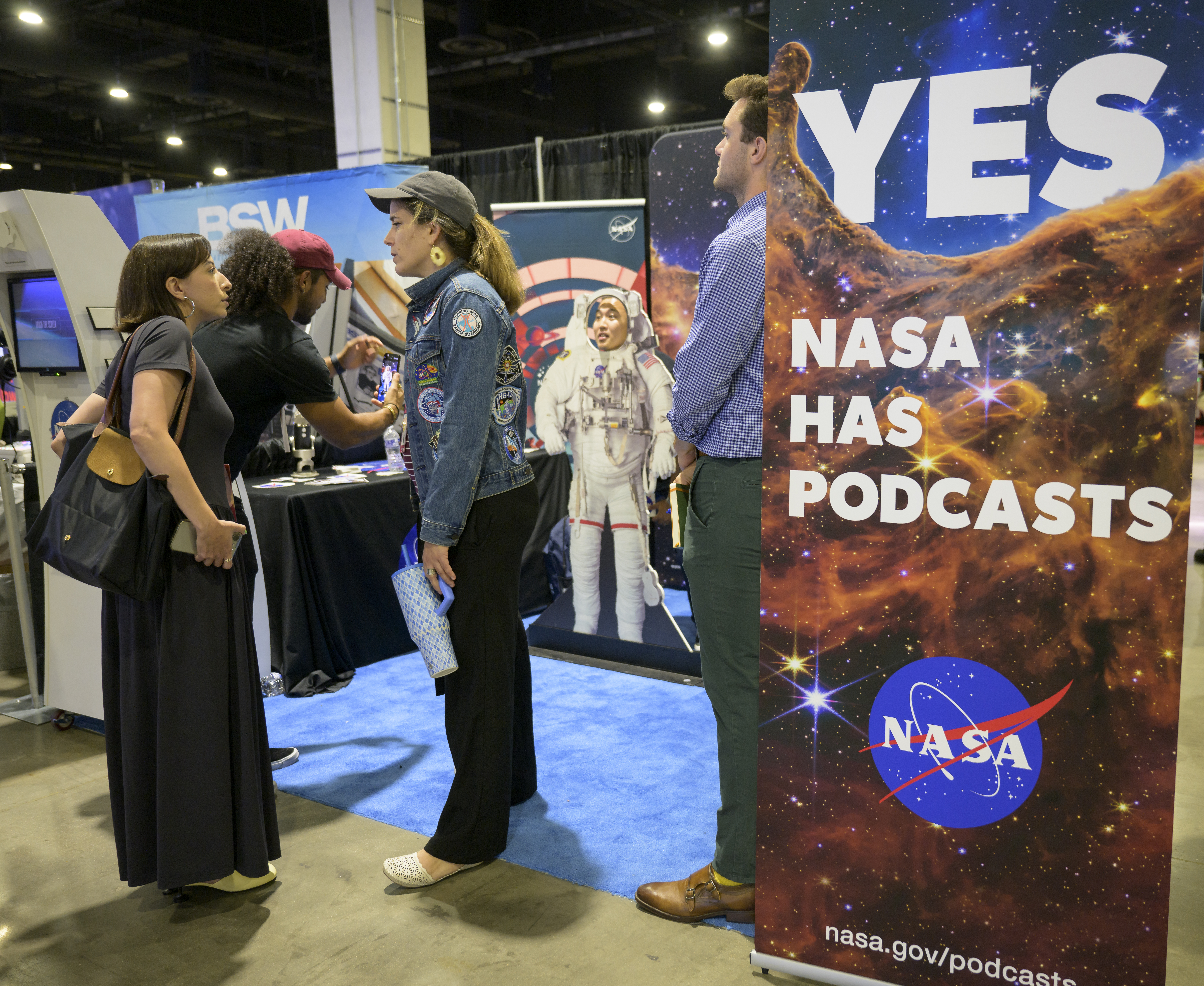 NASA participates in the Podcast Movement conference, Tuesday, Aug. 20, 2024, at the Gaylord National Resort and Convention Center in National Harbor, Md. During the event, NASA hosted a panel entitled, "Eclipses, Moon Missions, and Climate Change: How NASA Reaches Curious Listeners." Photo Credit: (NASA/Bill Ingalls)