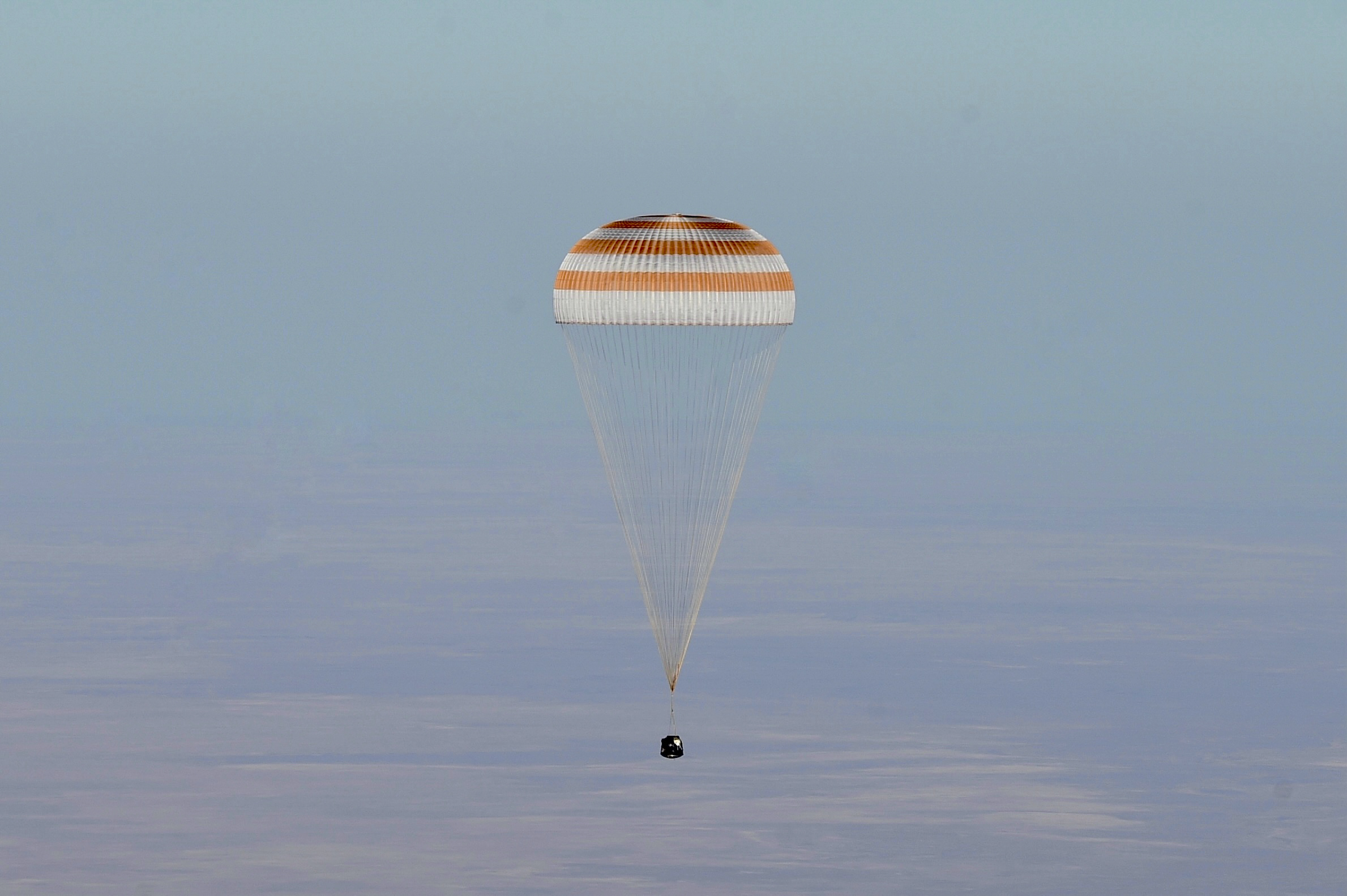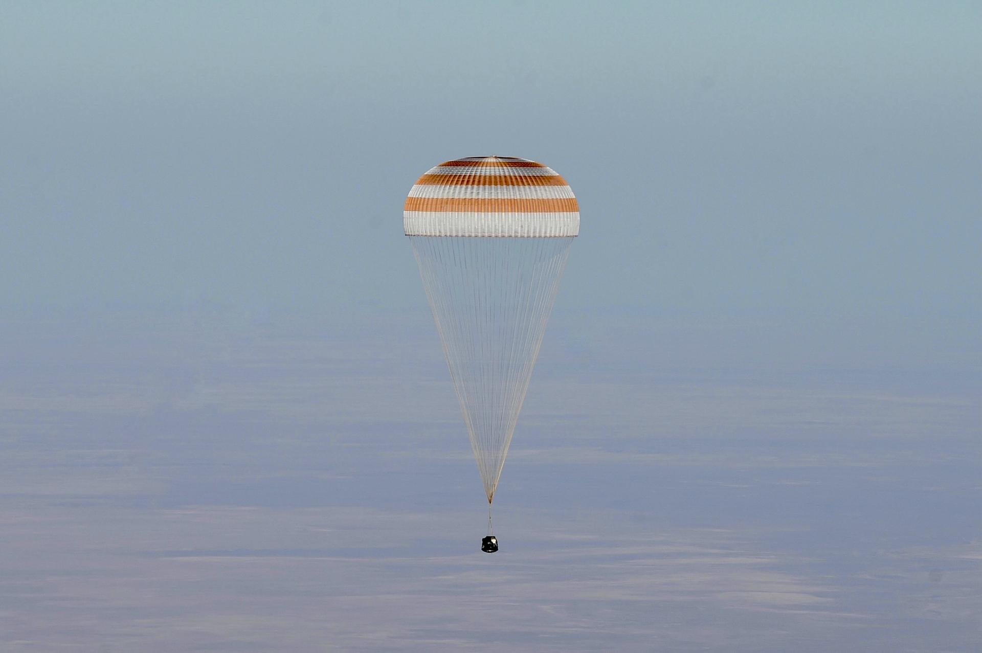 The Soyuz MS-25 spacecraft is seen as it lands in a remote area near the town of Zhezkazgan, Kazakhstan with Expedition 71 NASA astronaut Tracy C. Dyson, and Roscosmos cosmonauts Nikolai Chub and Oleg Kononenko, Monday, Sept. 23, 2024. Dyson is returning to Earth after logging 184 days in space as a member of Expeditions 70-71 aboard the International Space Station and Chub and Kononenko return after having spent the last 374 days in space. Photo Credit: (NASA/GCTC/Pavel Shvets)