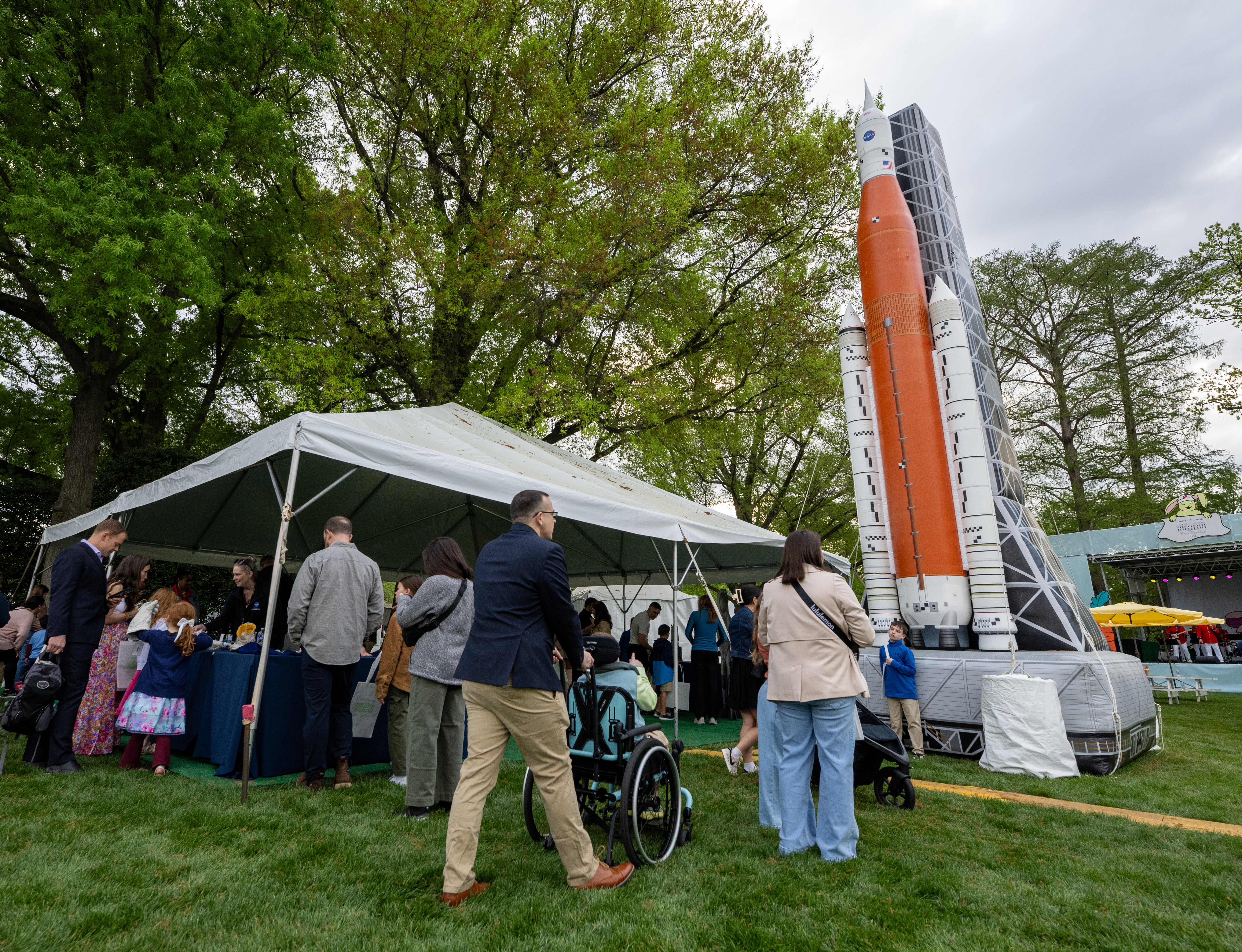 Guests participate in STEM activities during the White House Easter Egg Roll, Monday, April 21, 2025, on the South Lawn of the White House in Washington. Photo Credit: (NASA/Keegan Barber)