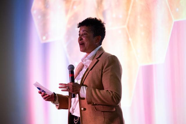 Cynthia Simmons, deputy director of NASA’s Goddard Space Flight Center, speaks before a screening of the new NASA+ documentary “Cosmic Dawn: The Untold Story of the James Webb Space Telescope,” Wednesday, June 11, 2025, at the Greenbelt Cinema in Greenbelt, Maryland. Featuring never-before-seen footage, Cosmic Dawn offers an unprecedented glimpse into the assembly, testing, and launch of NASA’s James Webb Space Telescope. Photo Credit: (NASA/Joel Kowsky)